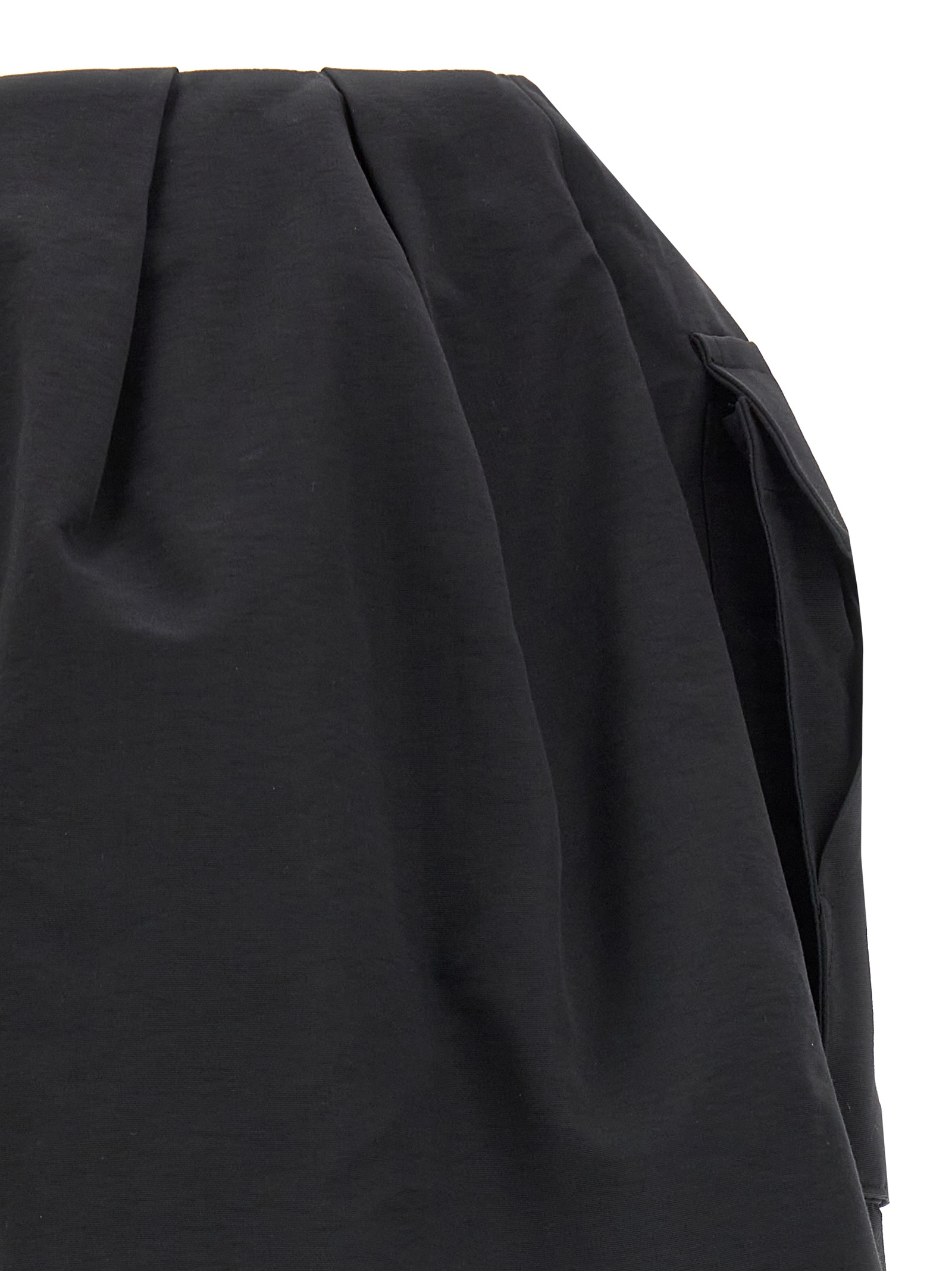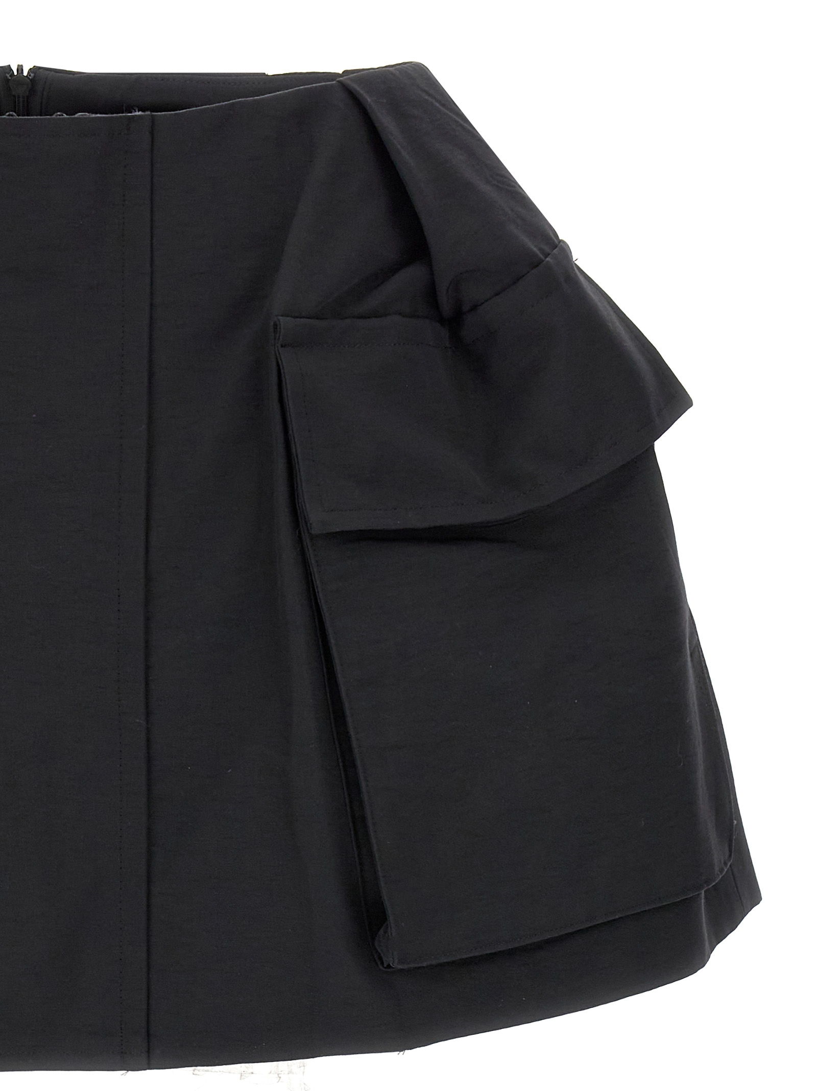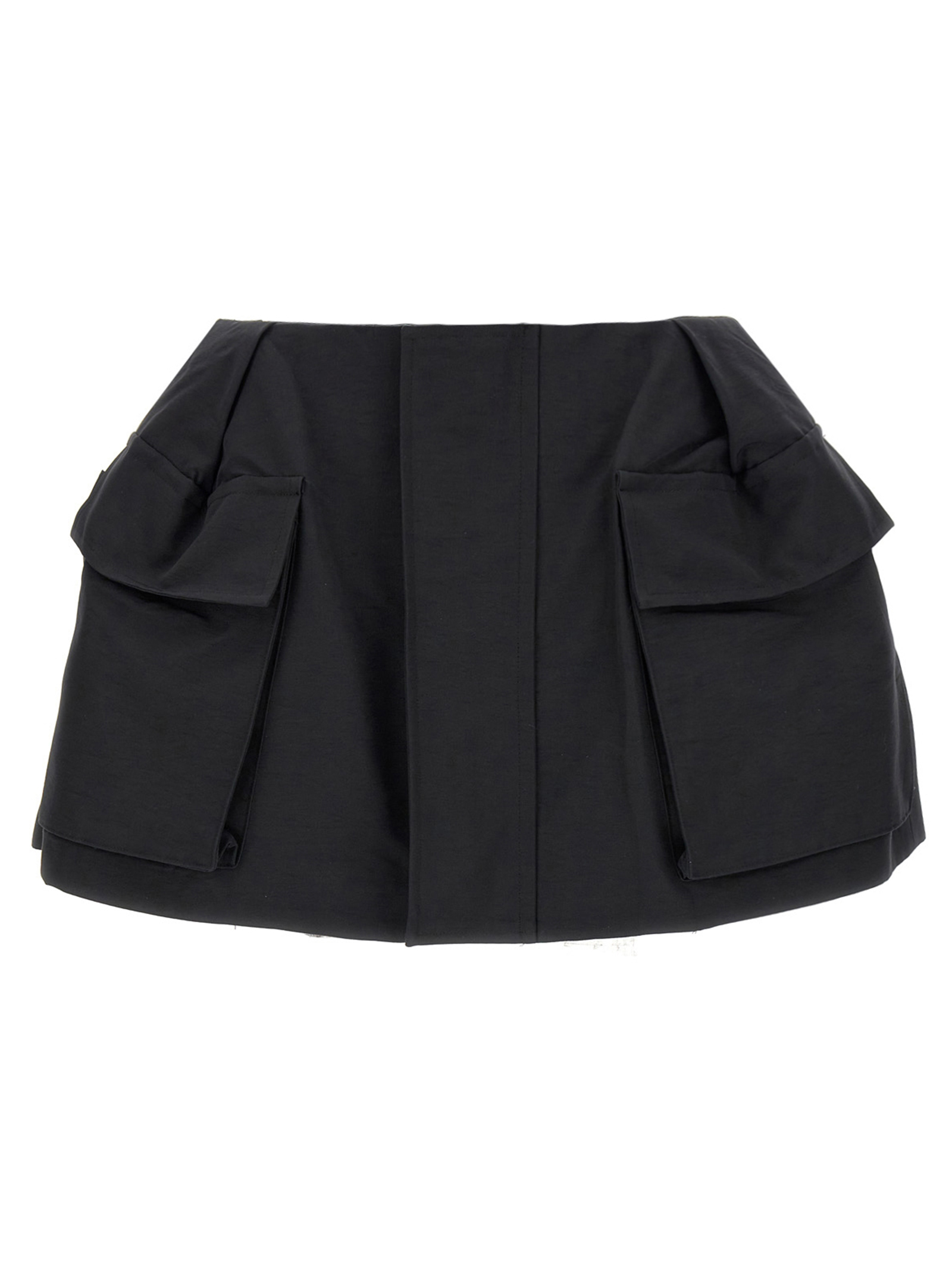 Cotton blend skort, front panel with zip closure and cargo pockets, back zip closure.