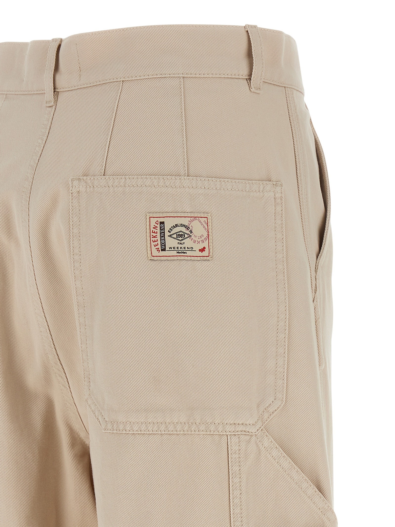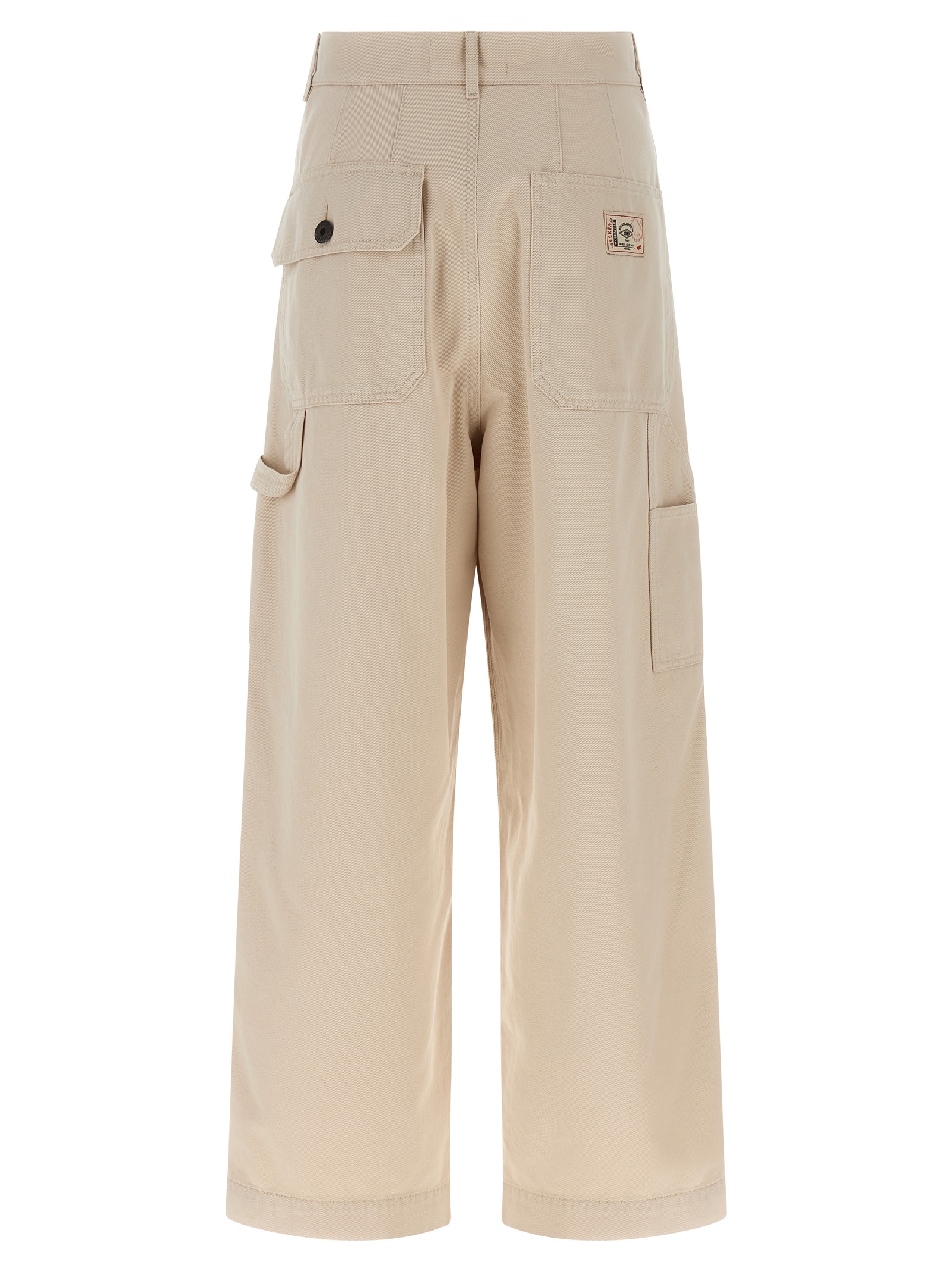 ‘Caronte’ pure cotton drill trousers washed, workwear model with patches on the knees and carpenter details on the sides, wide leg, front zip and button closure, pockets, back patch.