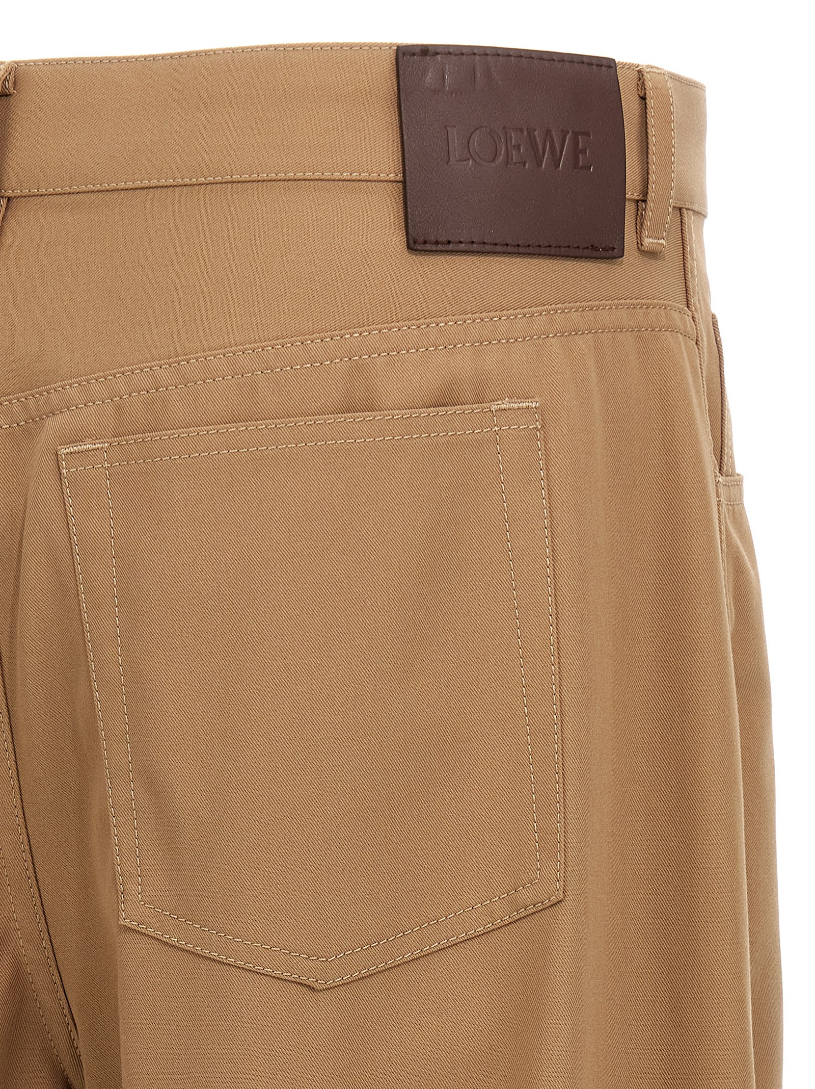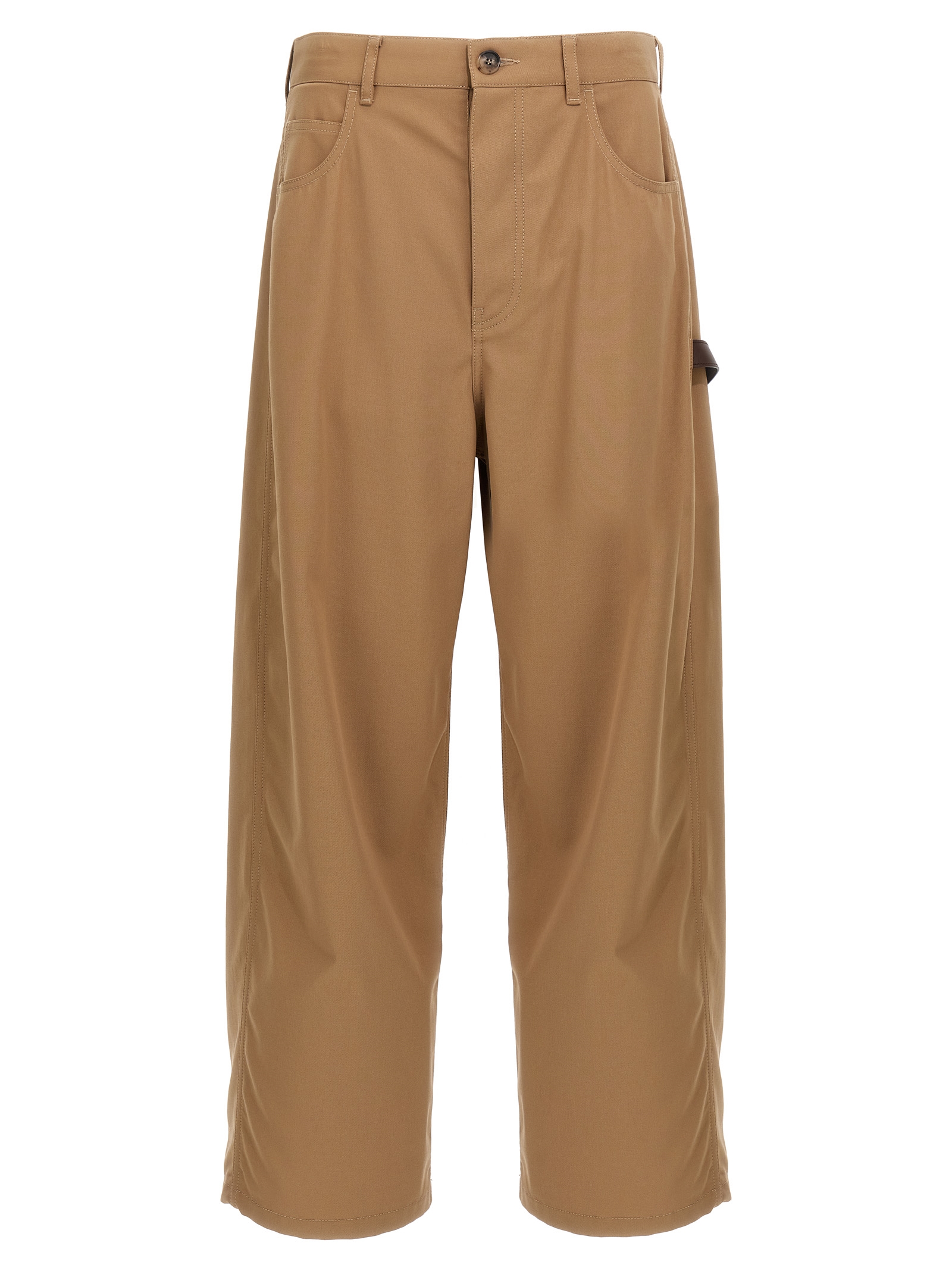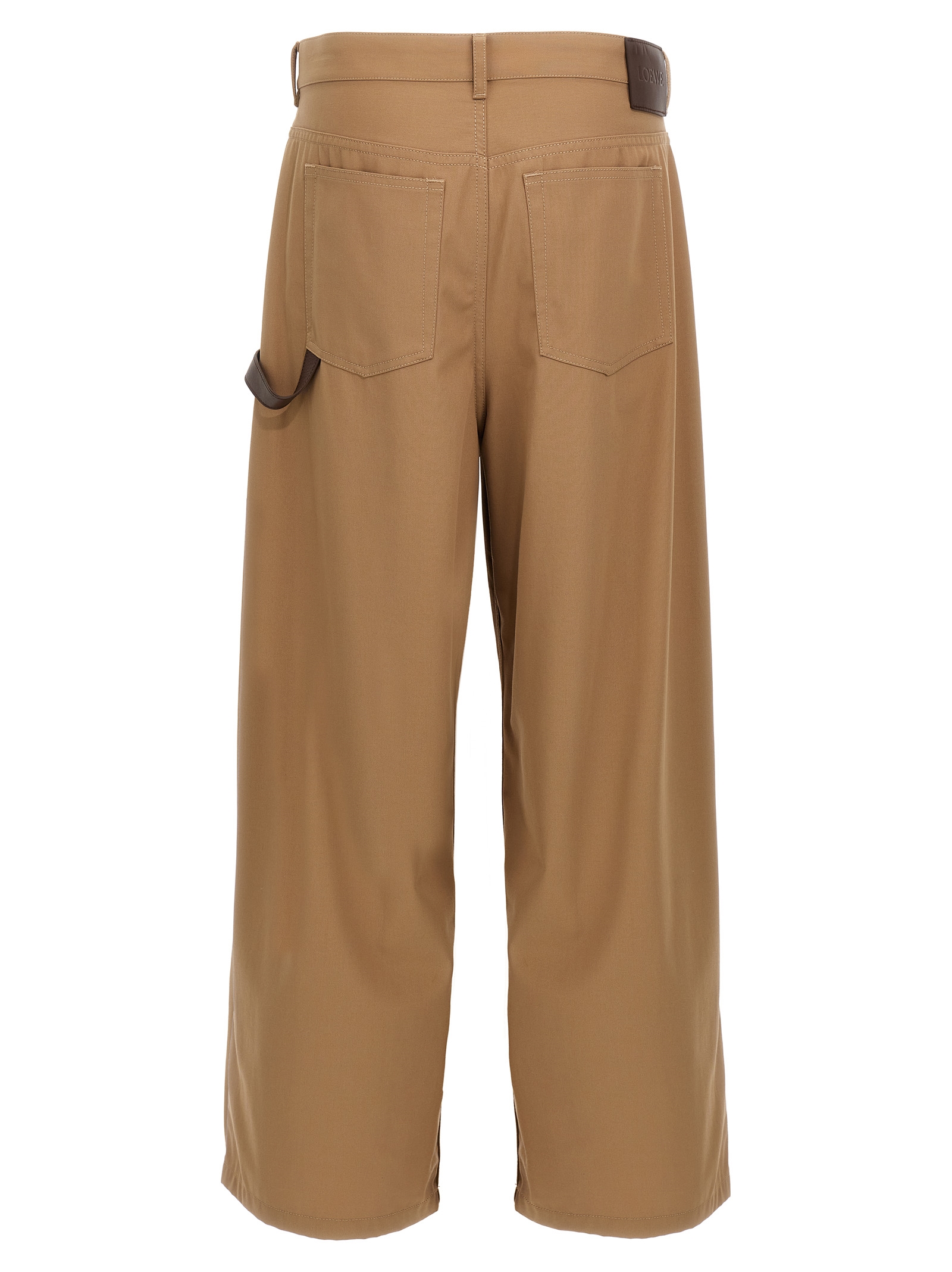‘Carpenter’ light cotton twill pants with leather details, mid-rise model with slightly curved leg, front button closure, five pockets, back logo tag.