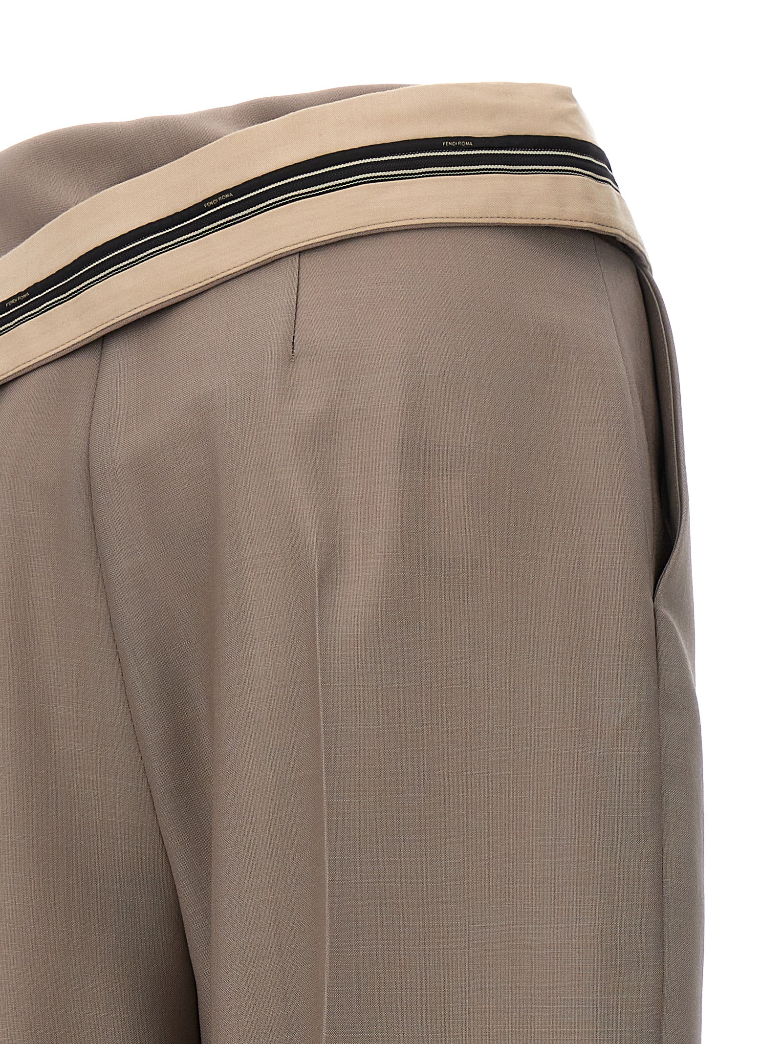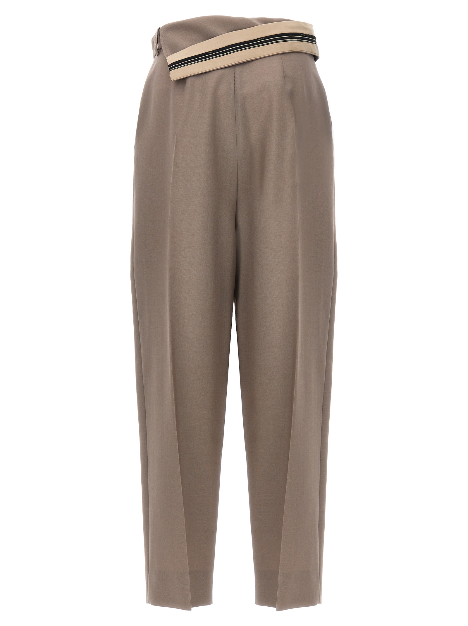 Mohair blend wool pants, carrot fit model with asymmetric waist, zip and hook closure.