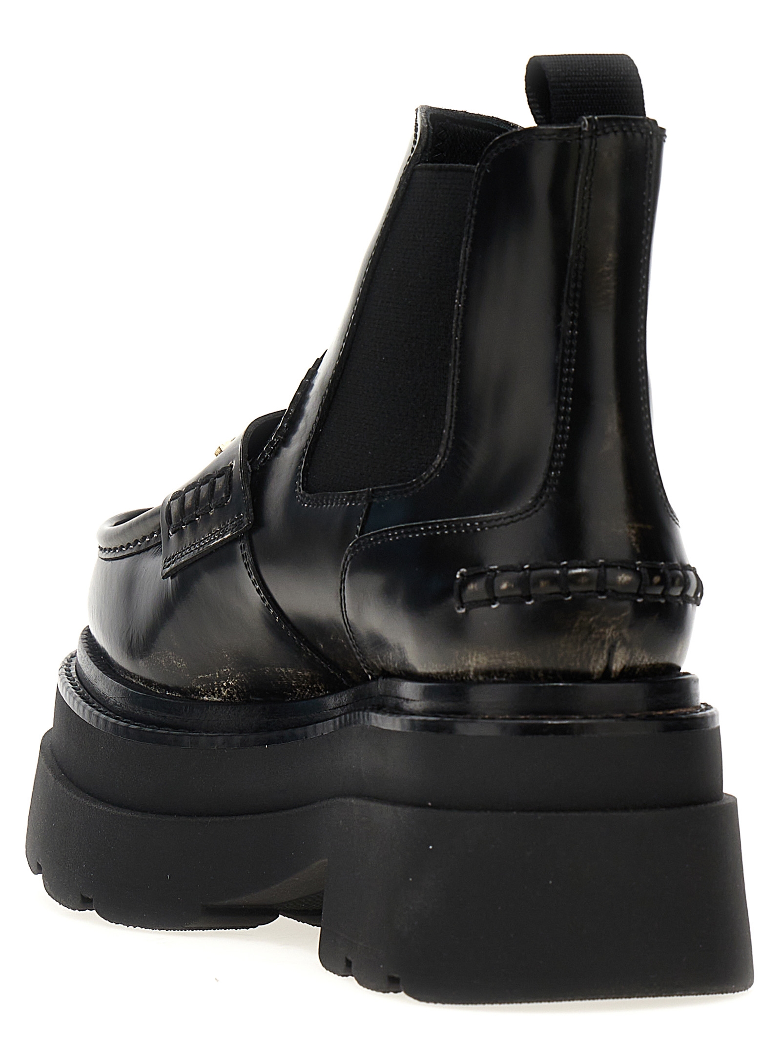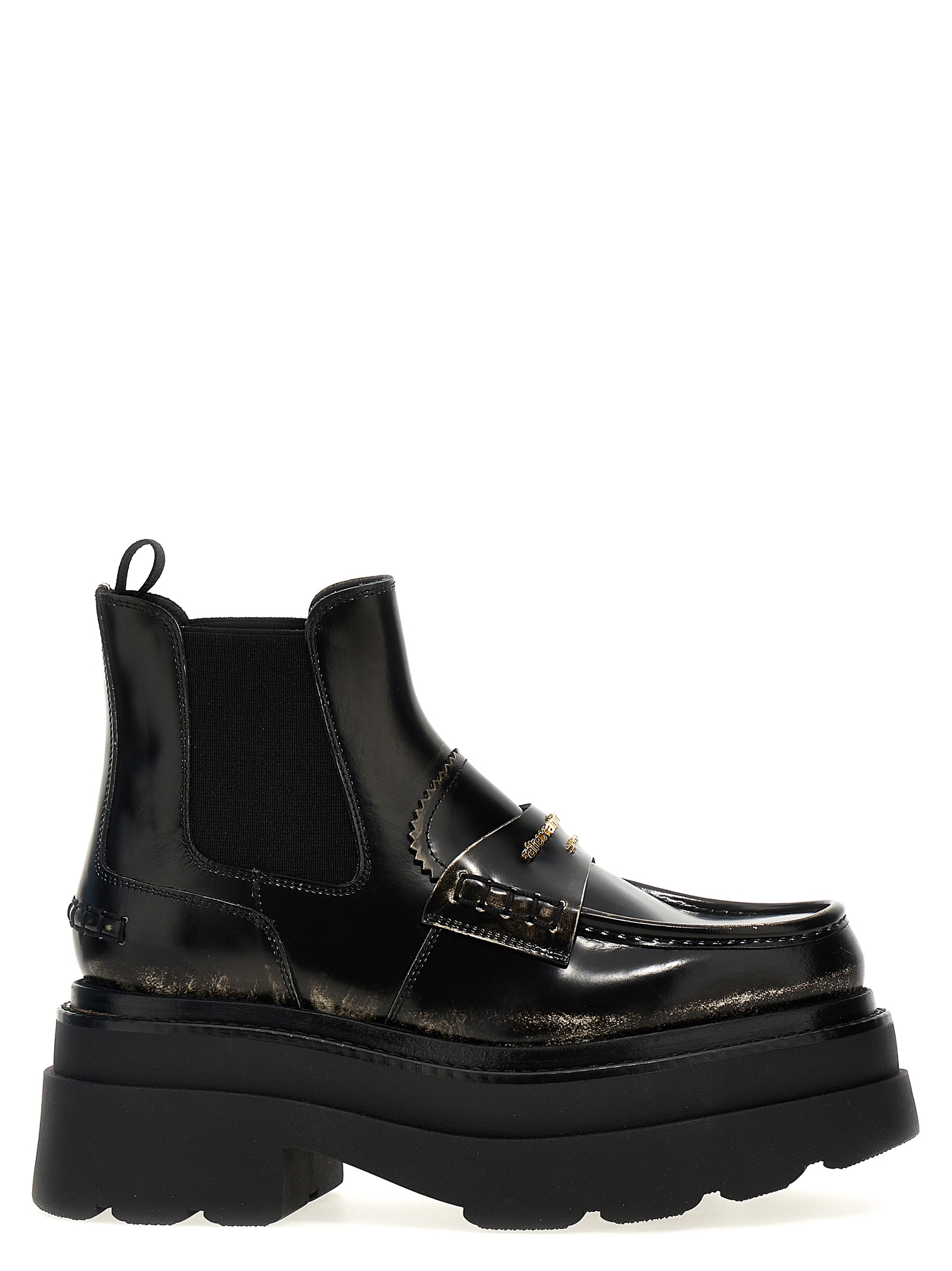 ‘Carter ankle platform’ leather ankle boots, front detail with metal logo, elastic ankle straps, platform rubber sole.