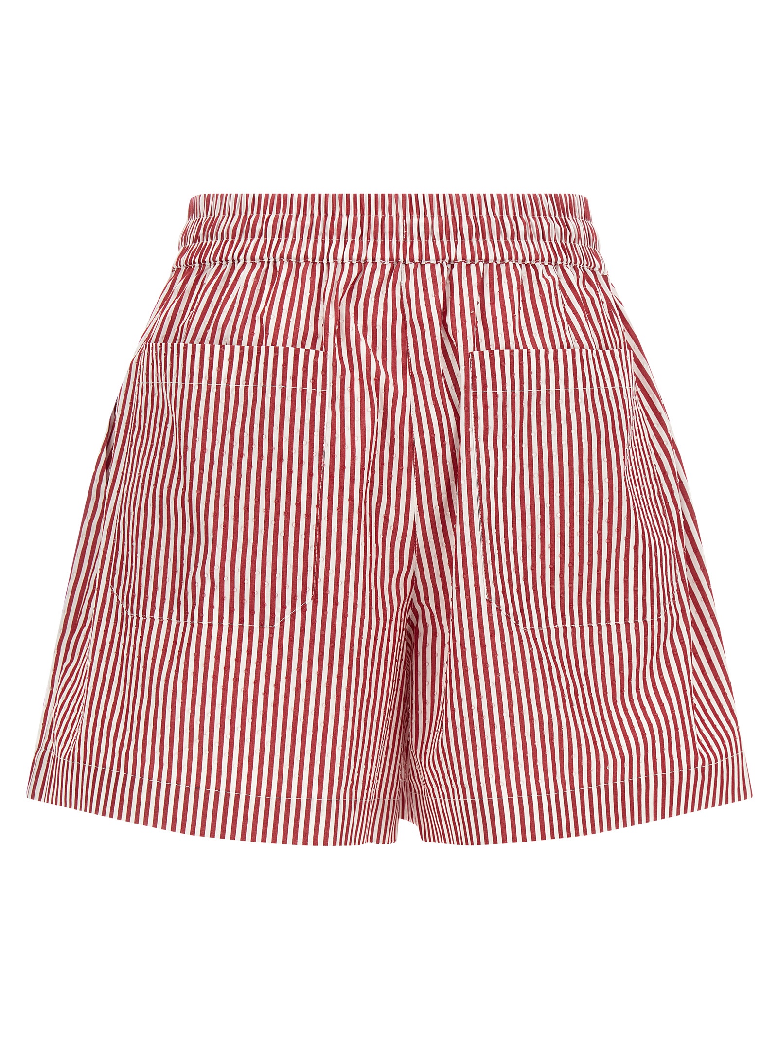‘Cashine’ striped cotton poplin shorts with all-over rhinestones, wide leg, drawstring elastic waistband, pockets.