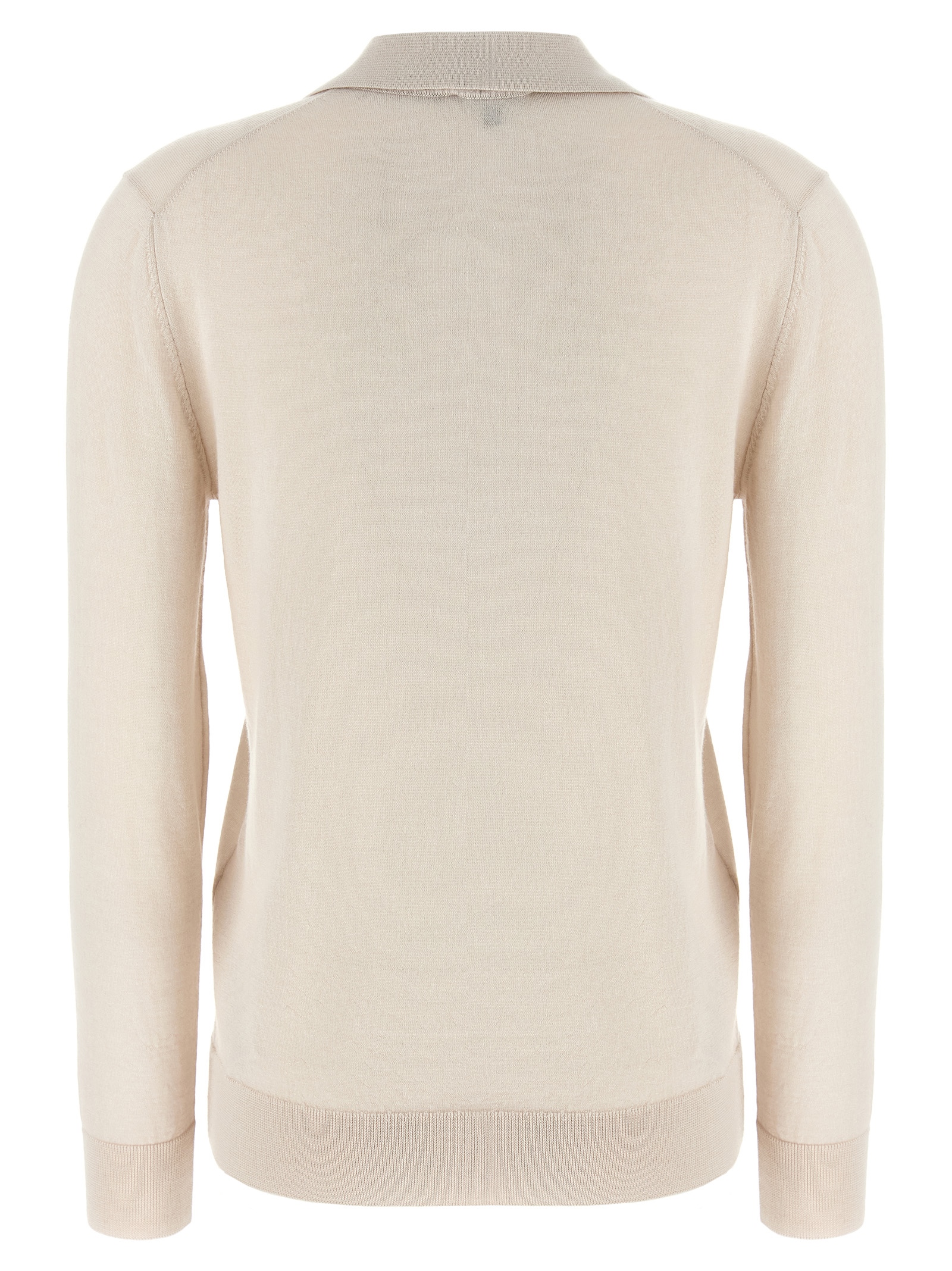 Polo shirt in cashmere and silk blend with 18 fineness, collar and V-neck, long sleeves with cuffs.