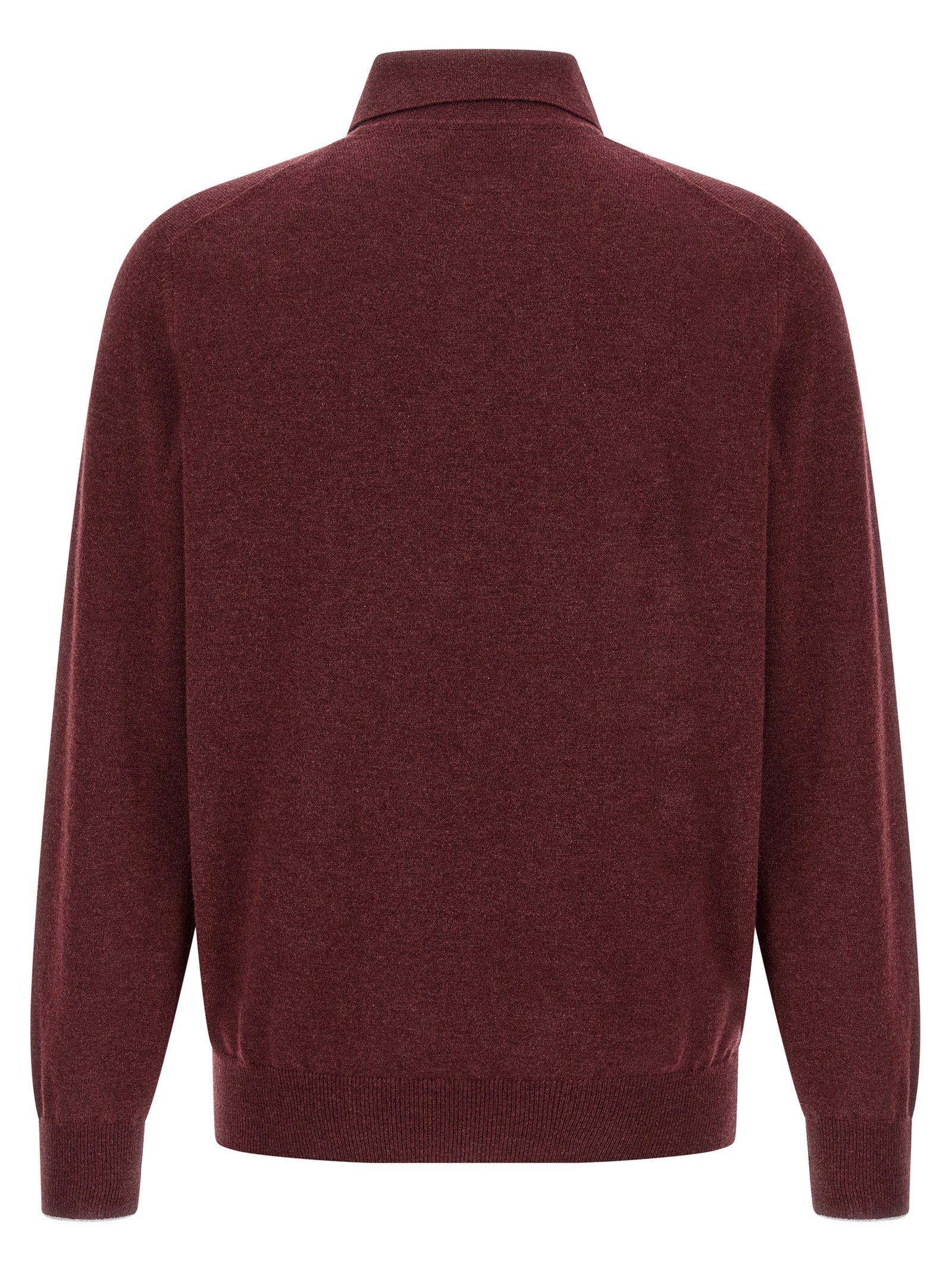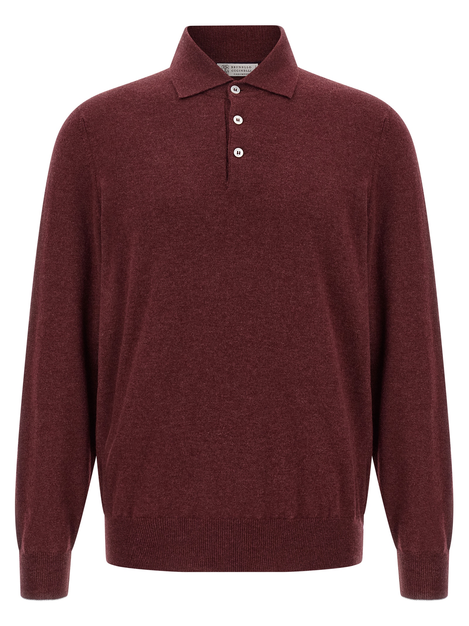 Melange cashmere polo shirt with contrast details, collar, buttons, long cuffed sleeves.