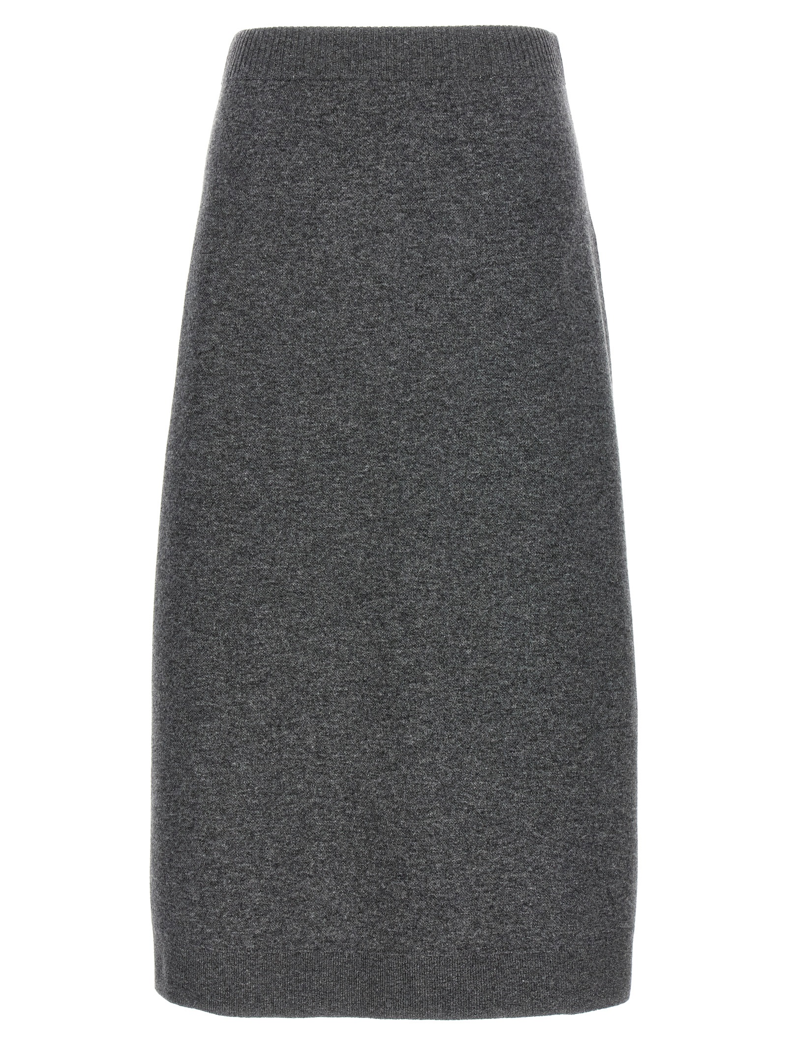 Midi skirt in stretch cashmere with longuette model, elastic waistband and hem.