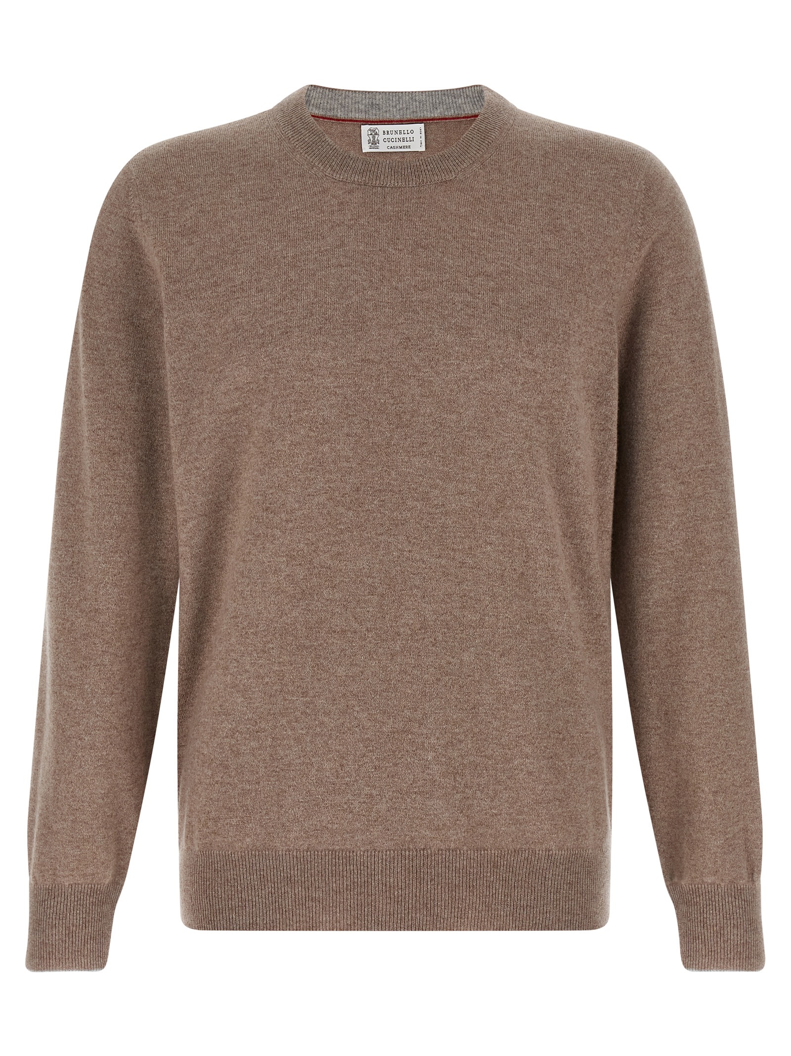 Cashmere sweater with crew neck and long cuffed sleeves.