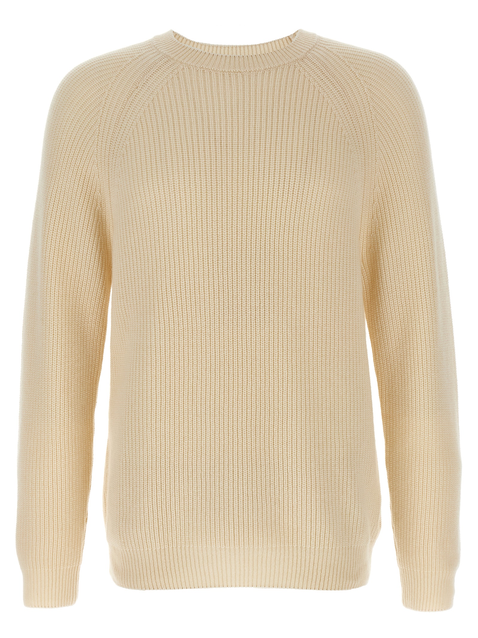 Knitted cashmere sweater with crew neck, long cuffed sleeves.