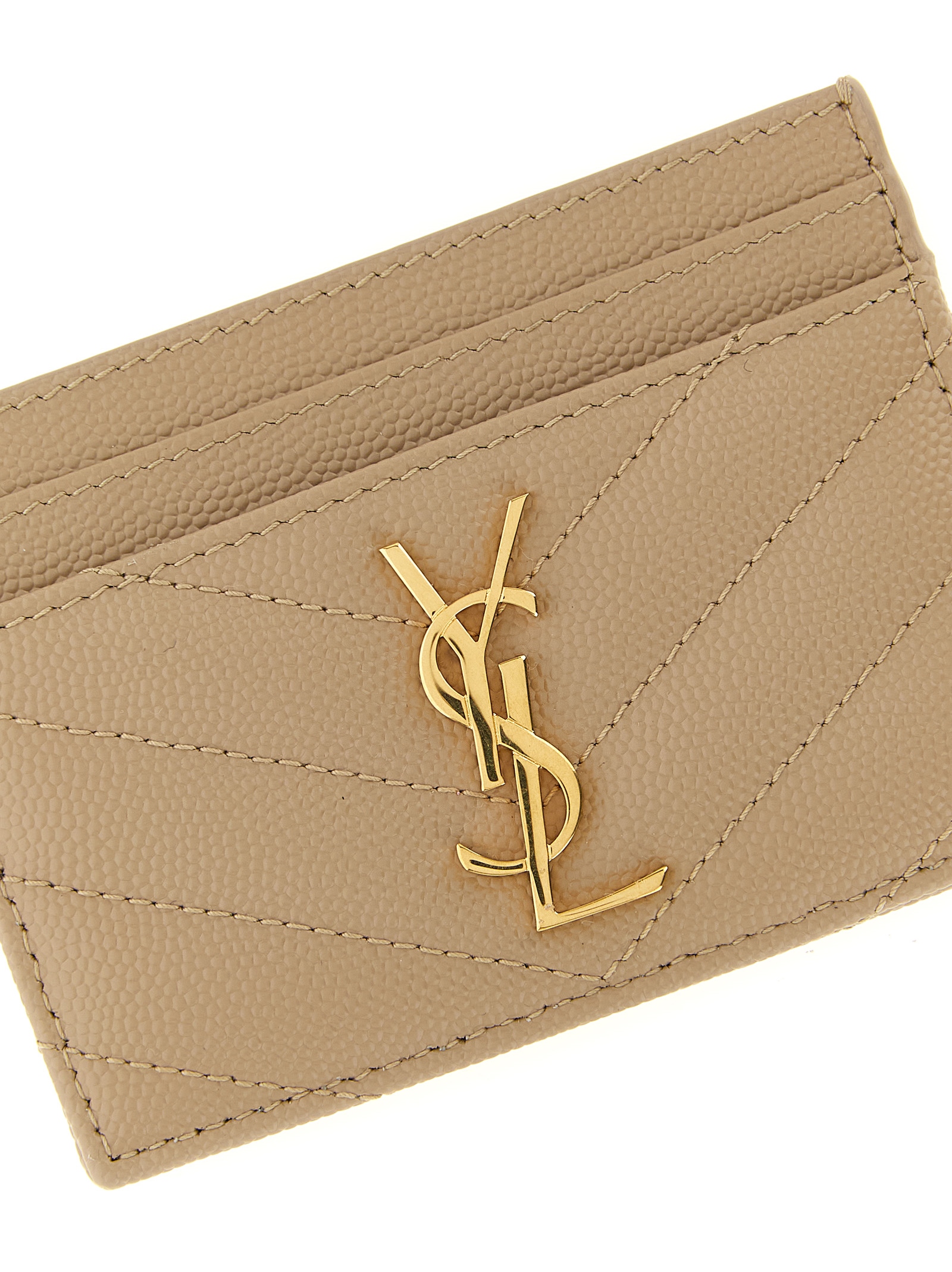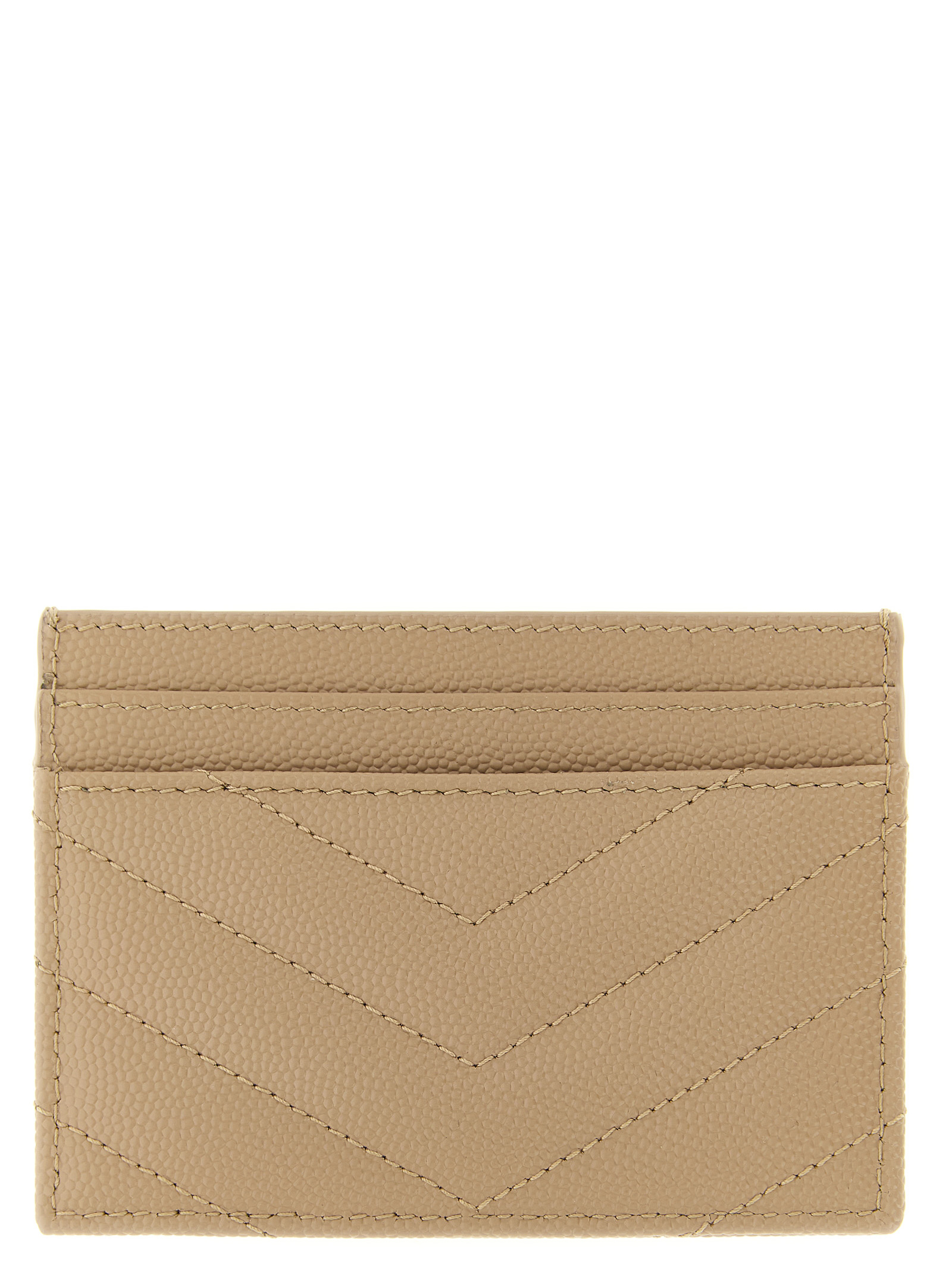 Quilted metal-free tanned matelassé leather card holder with grain de poudre and quilted metal ‘Cassandre’ logo.