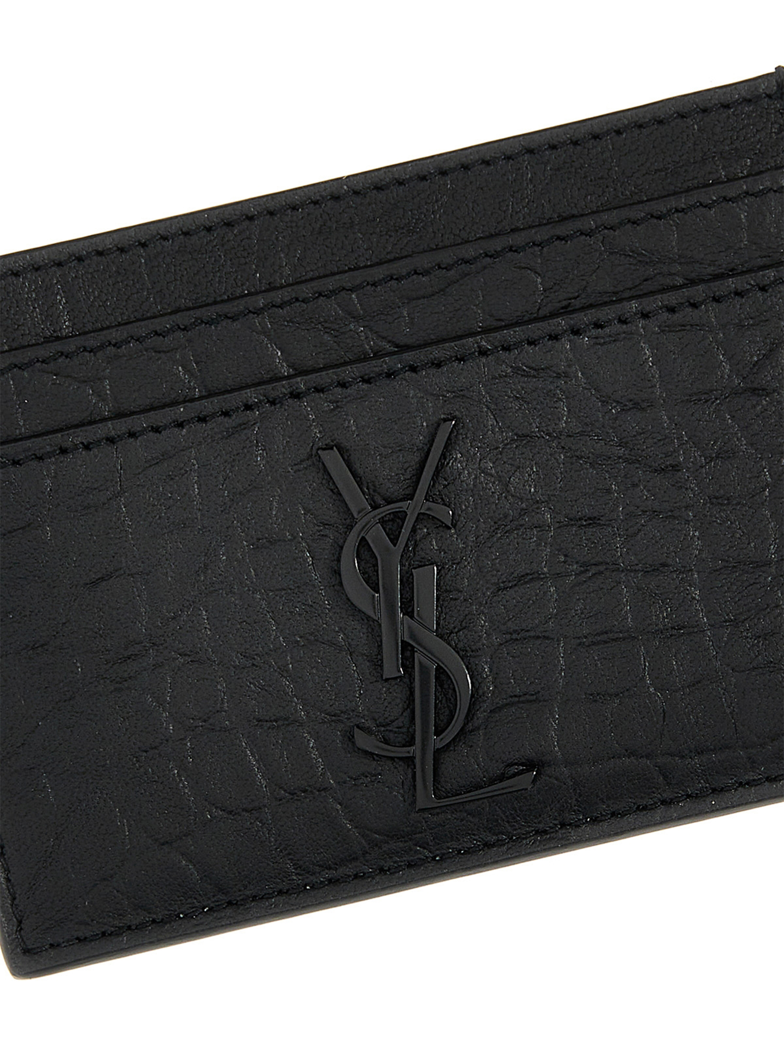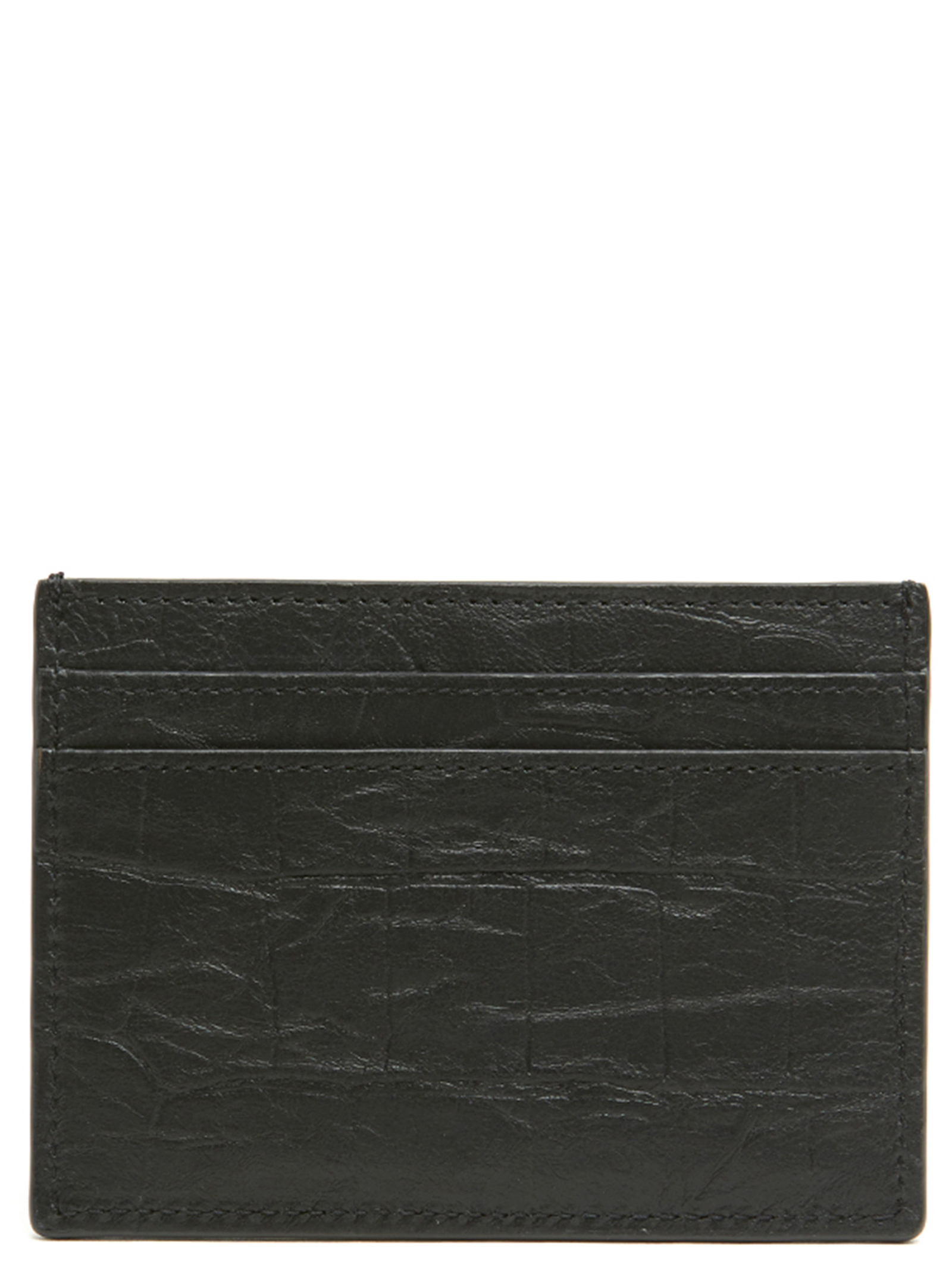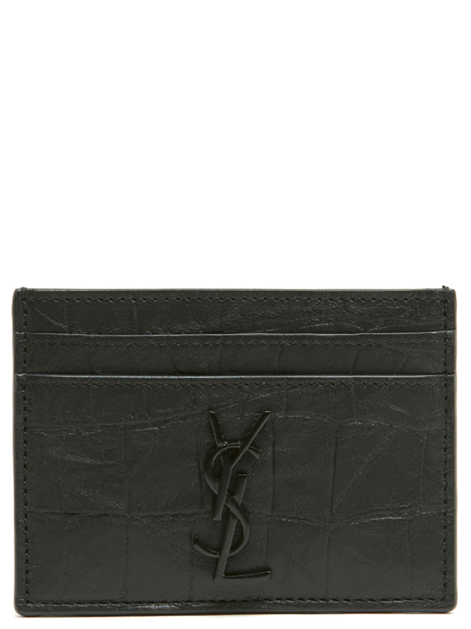 ‘Cassandre’ crocodile print leather card holder with tone-on-tone metal logo.