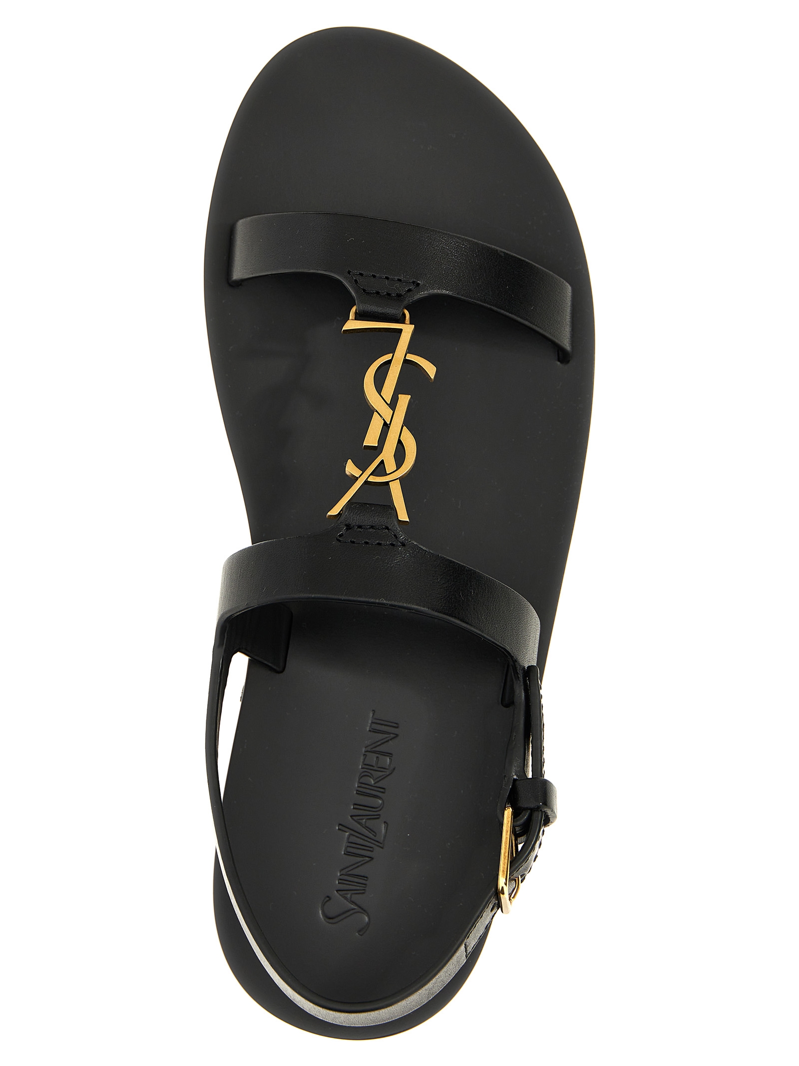 Leather sandals with antiqued effect metal ‘Cassandre’ logo on the front, adjustable strap, and leather sole.
