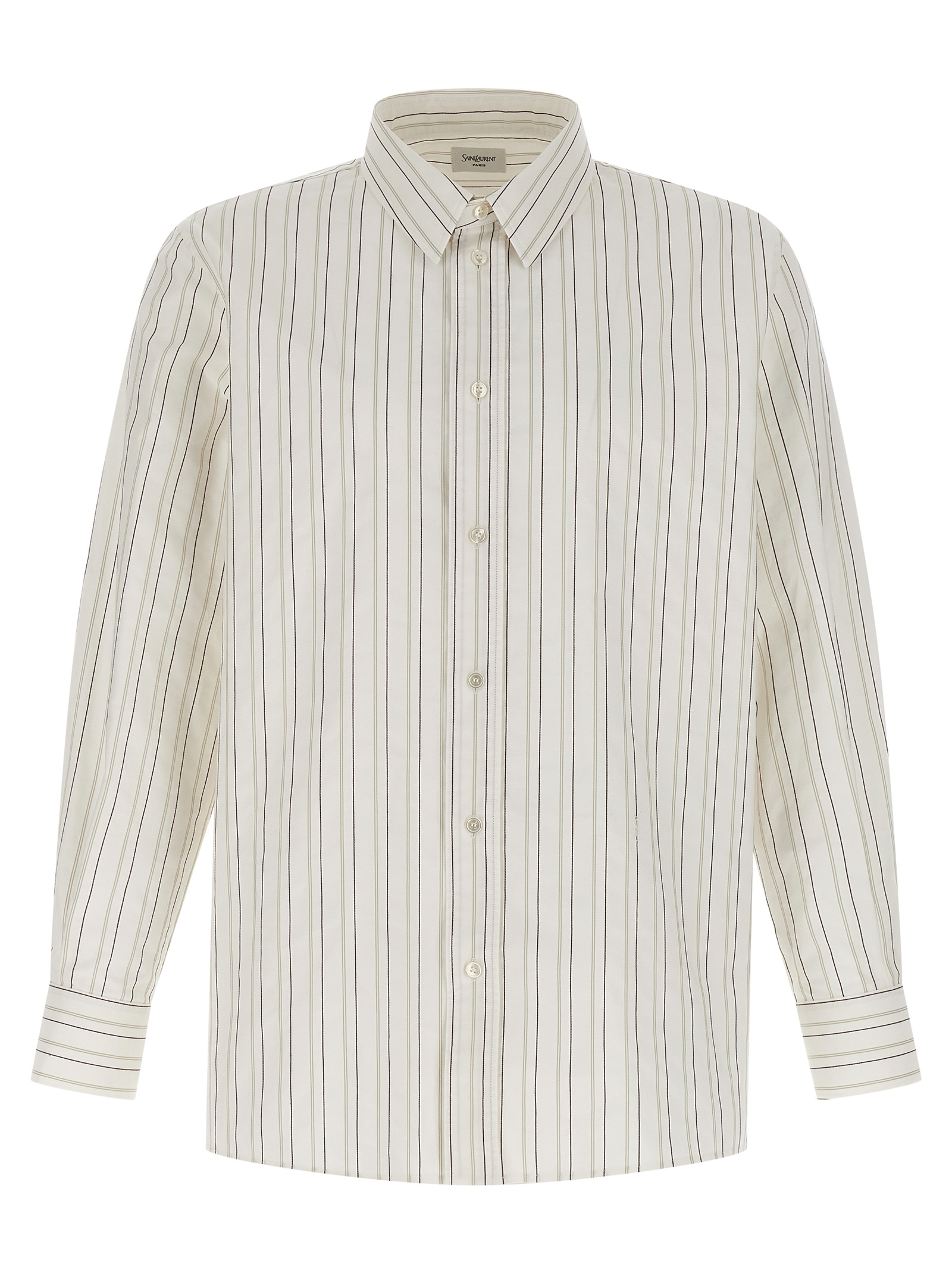 Striped cotton shirt with front ‘Cassandre’ embroidery, button closure, long cuffed sleeves.
