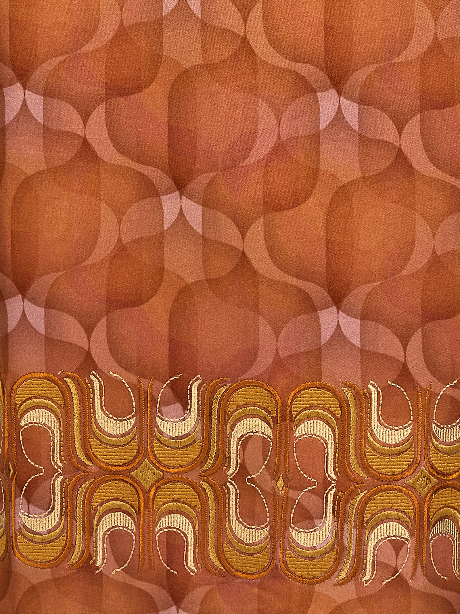 ‘Cassiemb’ viscose shirt, short-sleeved model with patterned fabric with contrast embroidery on the lower part.