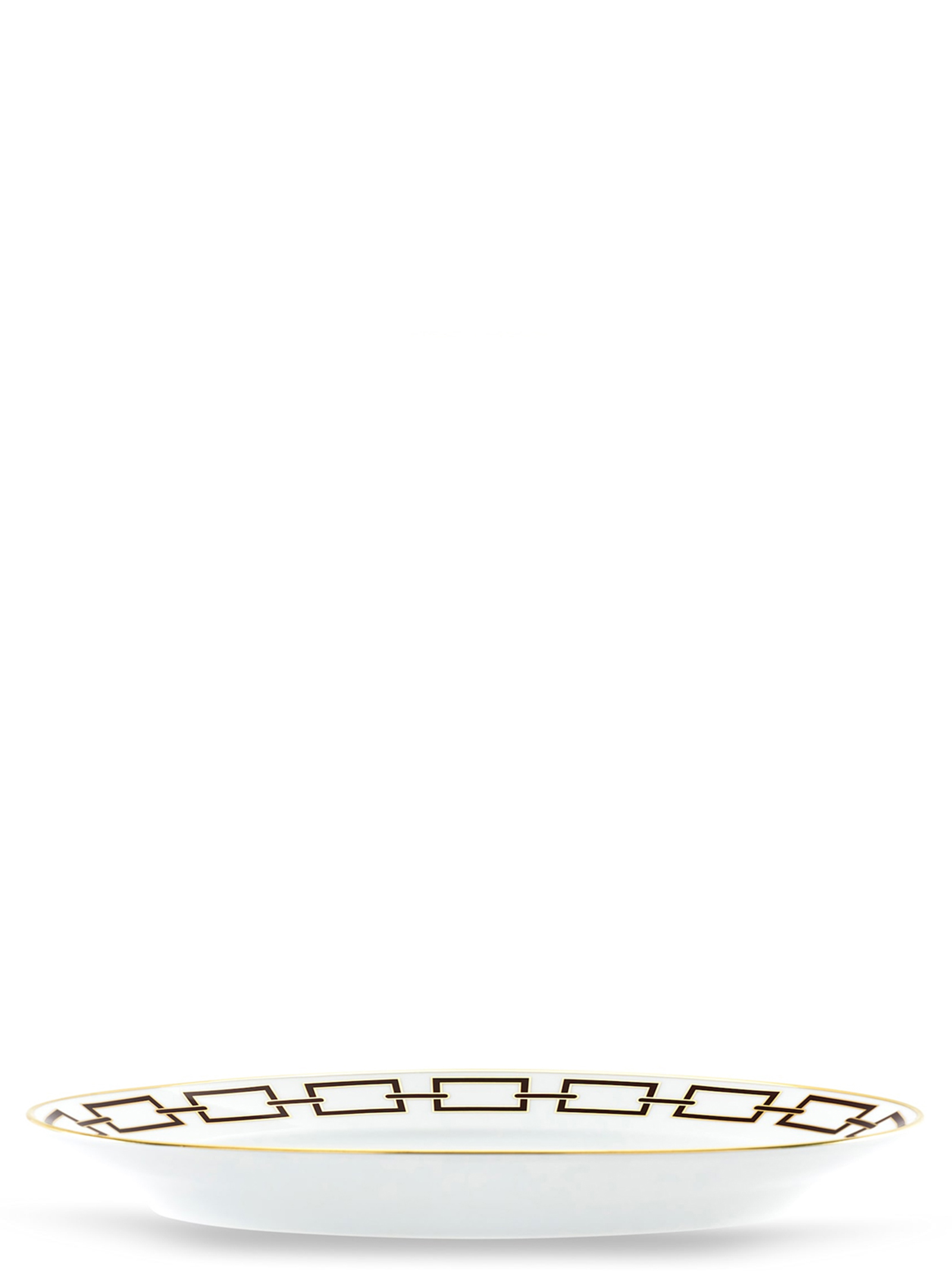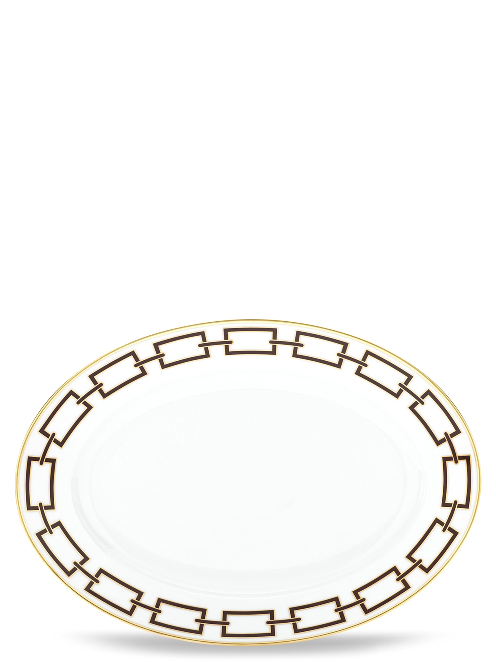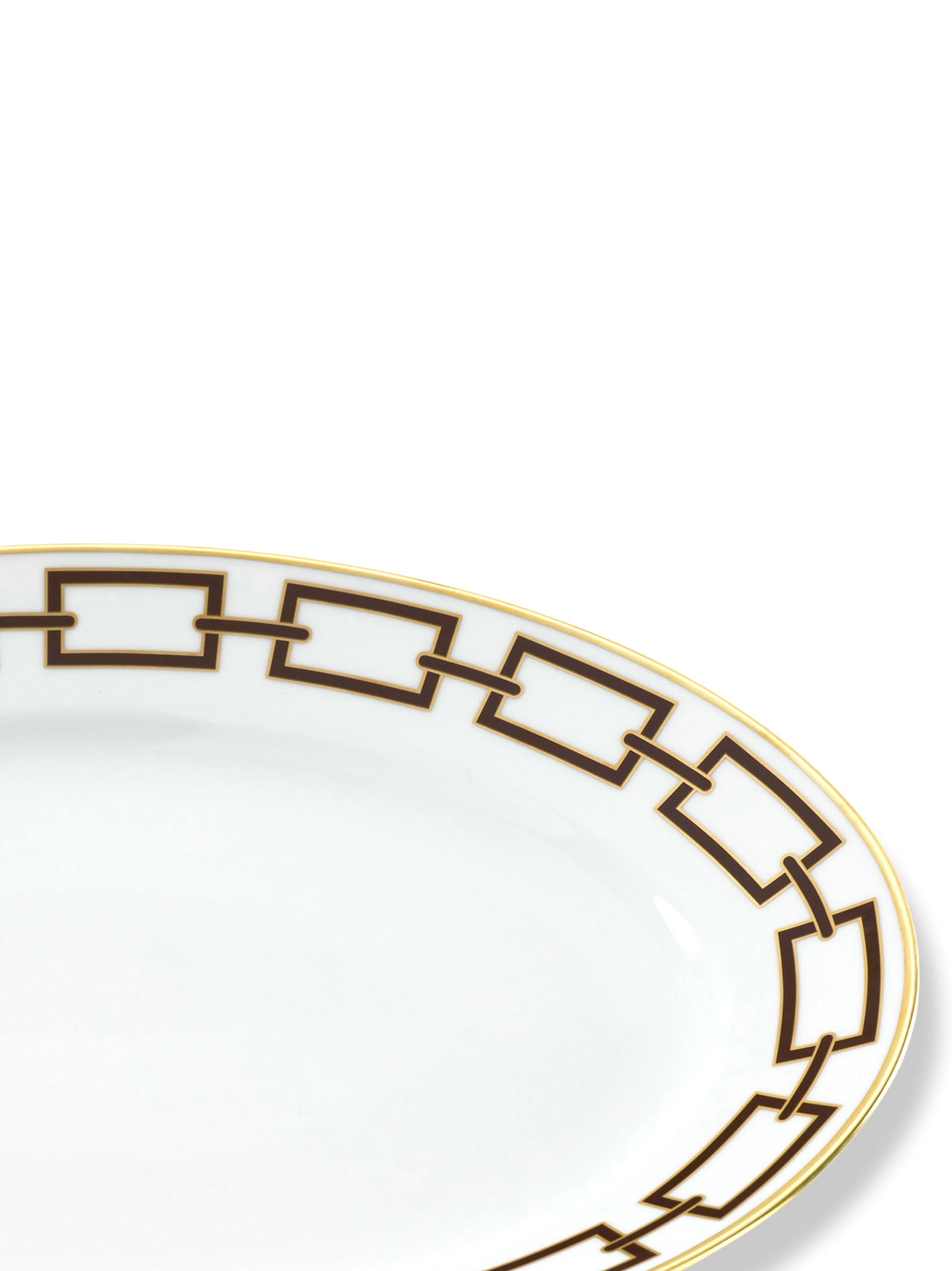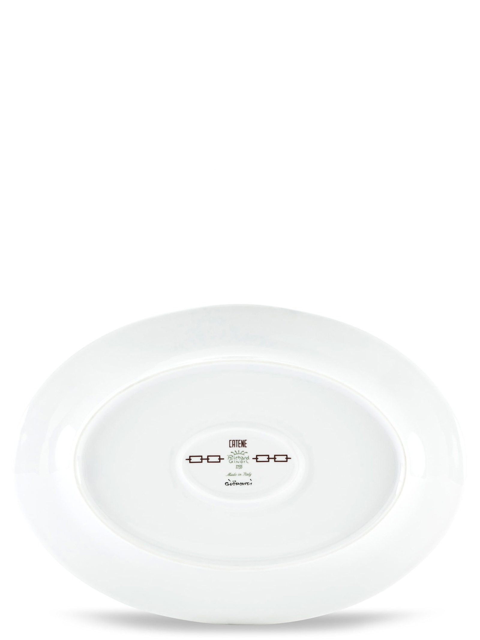Oval porcelain tray with brown Ebony decoration and gold thread. ‘Catene’ collection by Gio Ponti.