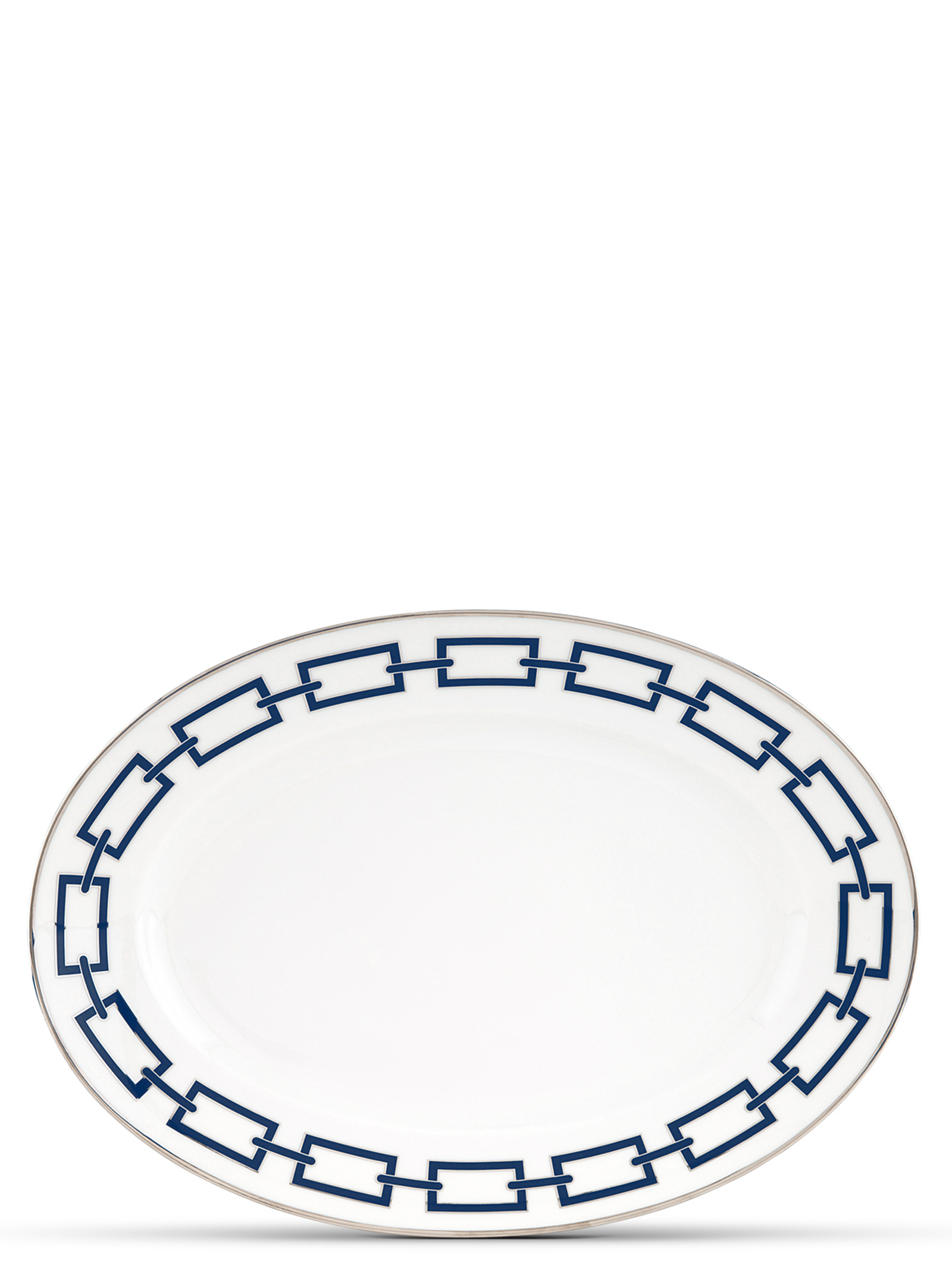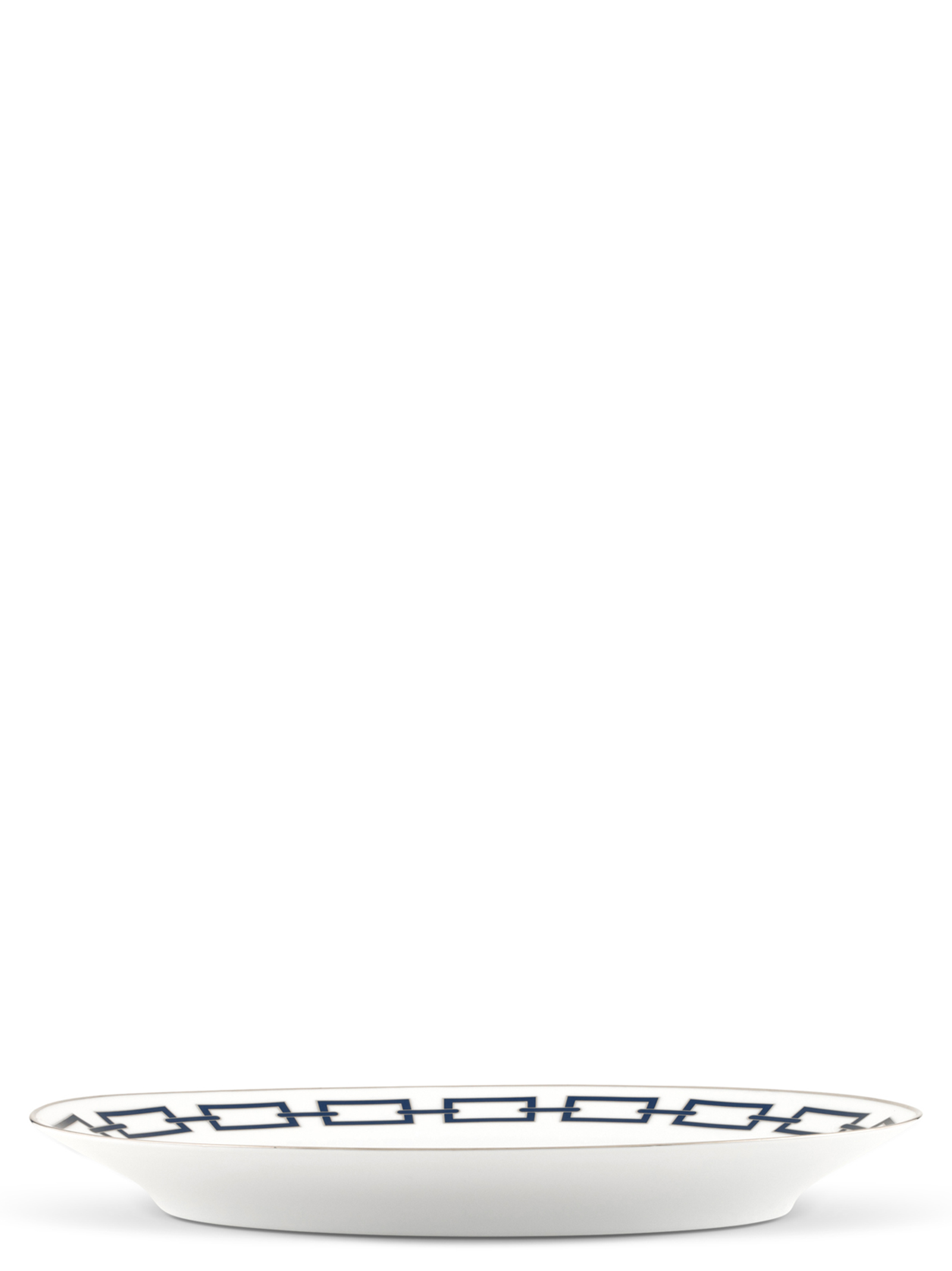 Oval porcelain tray with blue and platinum decoration. ‘Catene’ collection by Gio Ponti.