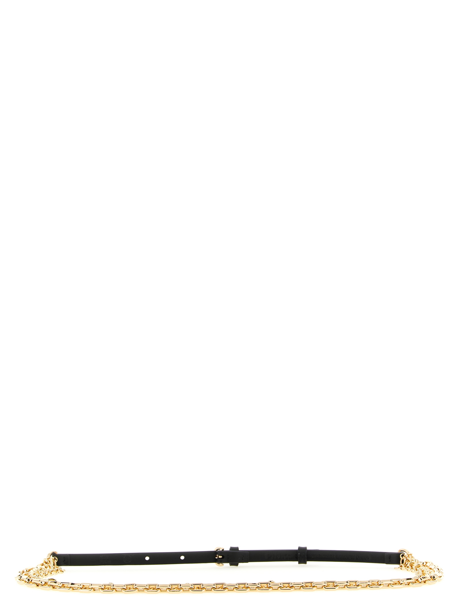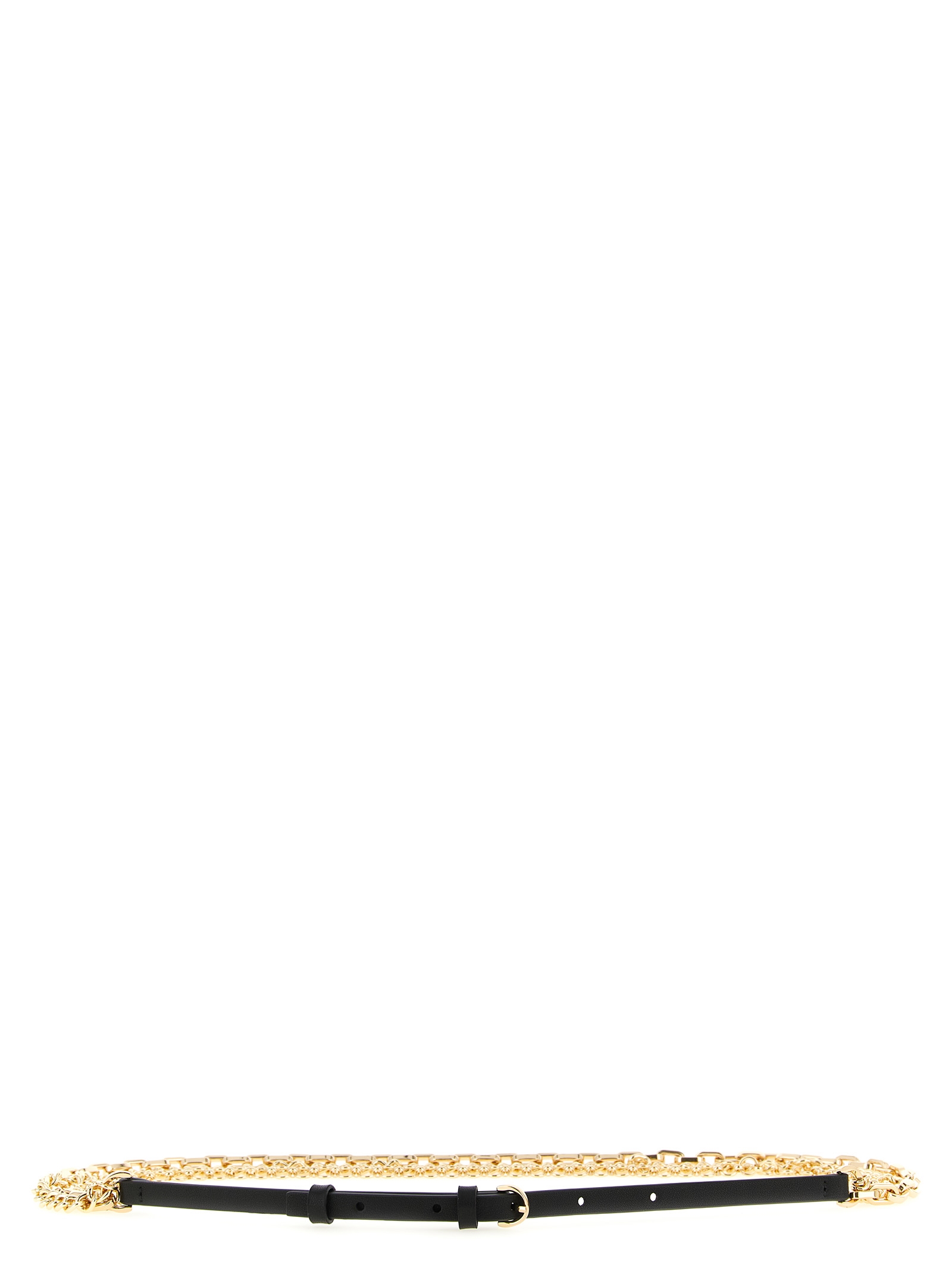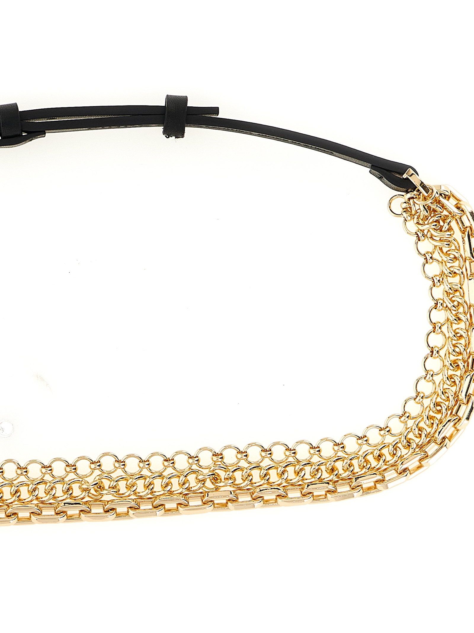 Leather belt with three wires of metal chain on the front.