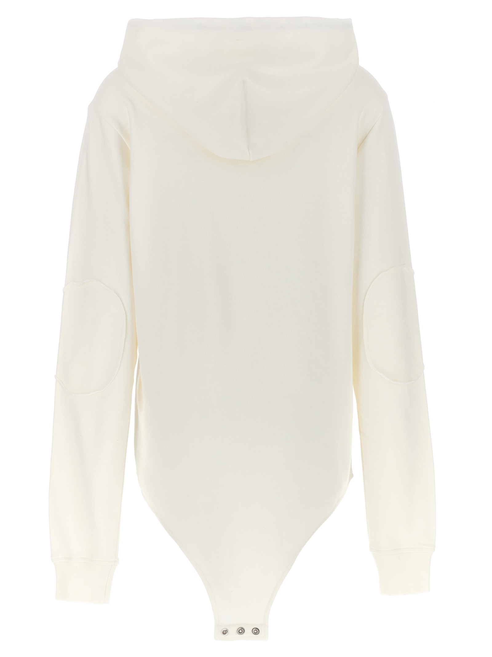 Champion x Rick Owens hooded bodysuit in cotton sweatshirt fabric with front embroidery.