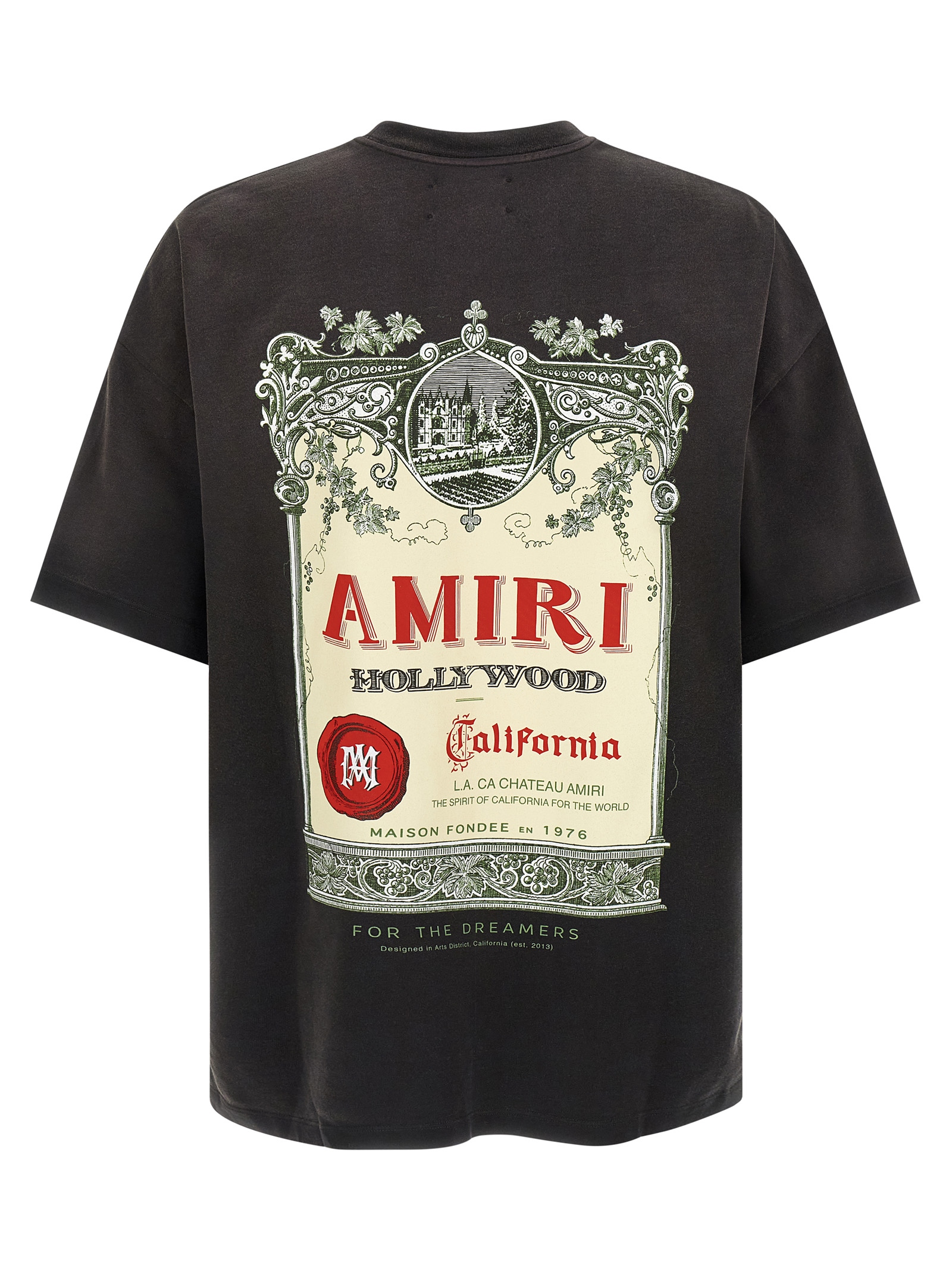 ‘Chateau Stamp’ sun-faded cotton T-shirt with front and back print, crew neck, short sleeves with dropped shoulders.