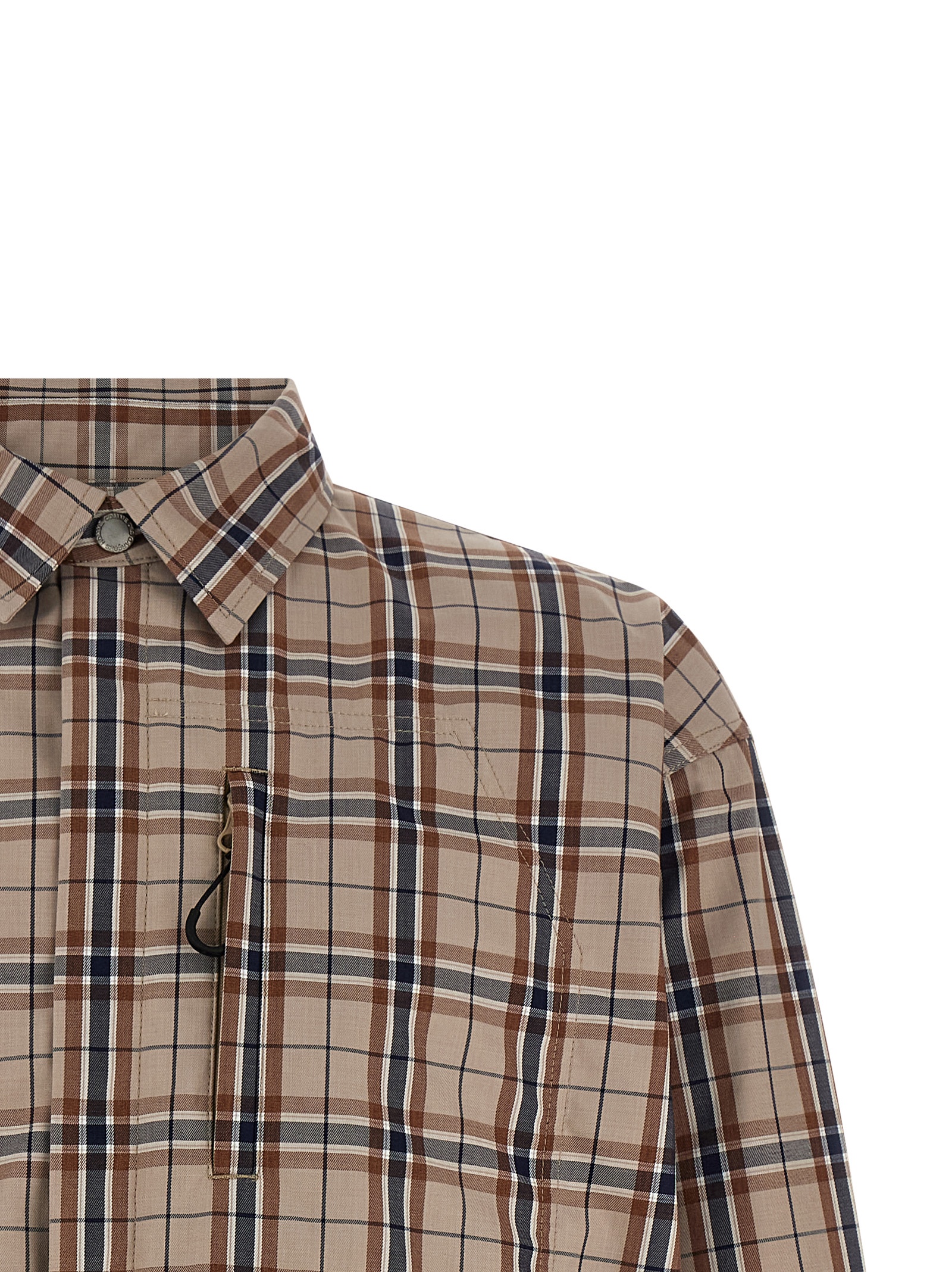 Check-print cotton blend overshirt, shirt collar, front zip and snap button closure, pockets, long sleeves with adjustable cuffs, drawstring at the hem, nylon lining.