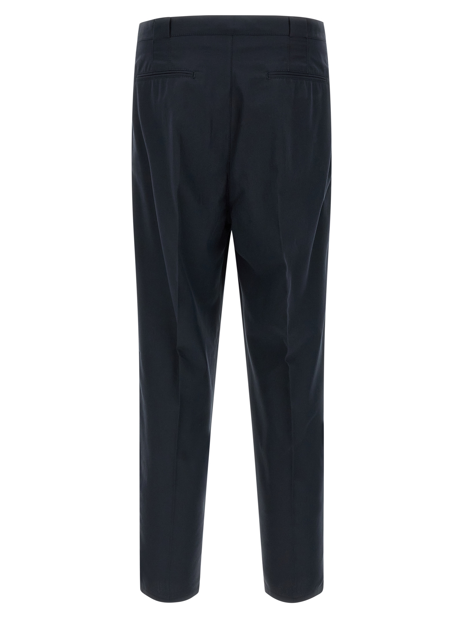 Chinos in cotton with front zip and button closure, regular waist model with straight leg, pleats at the waist and belt loops, diagonal welt pockets at the front and horizontally at the back.