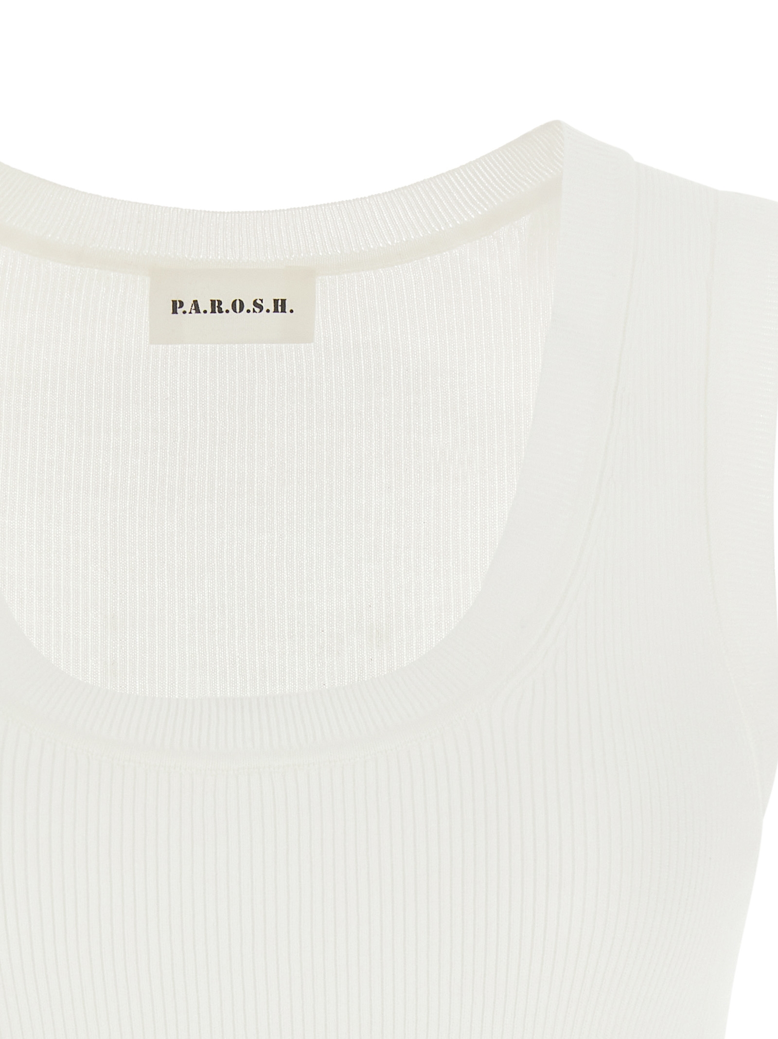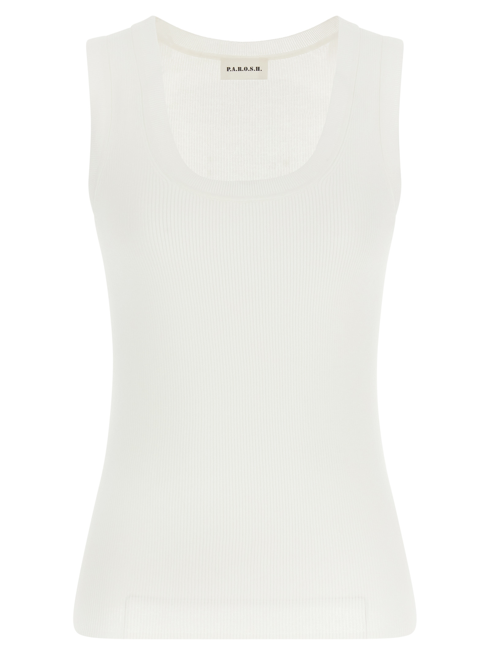 ‘Cipria26’ ribbed stretch cotton top with wide front neckline.