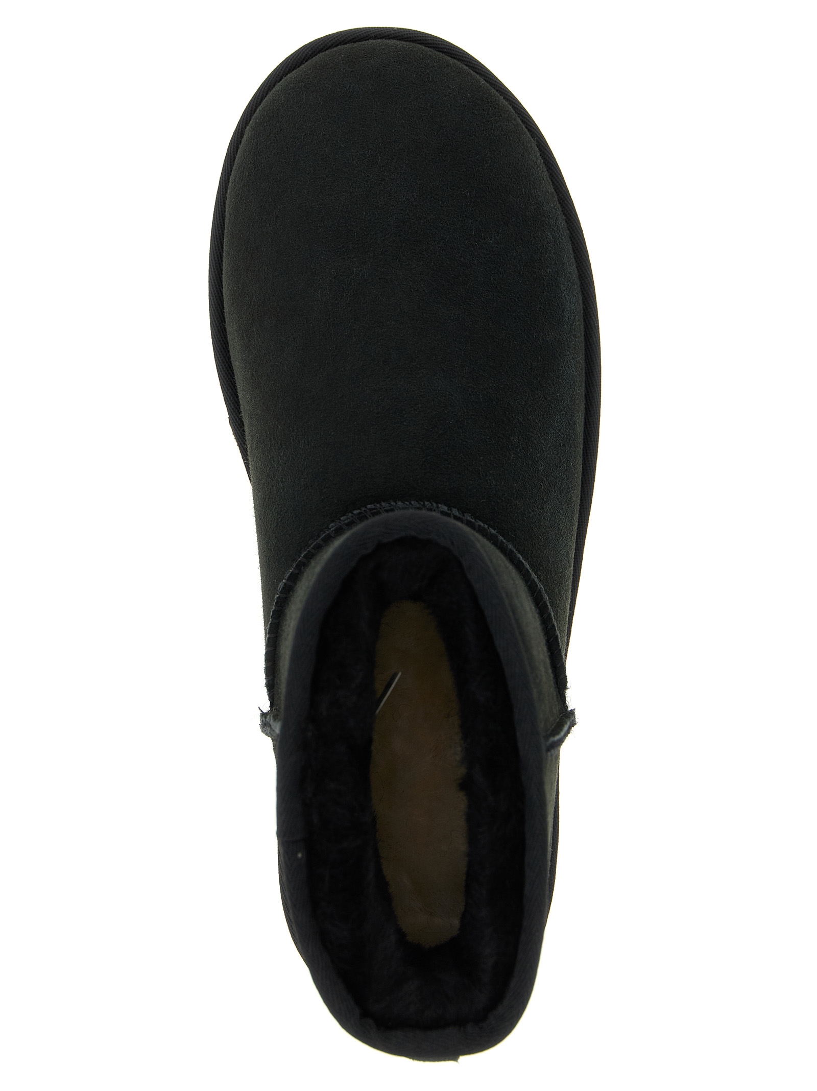 ‘Classic Mini II’ pre-treated suede ankle boots to resist moisture and stains, overlock stitching, tone-on-tone logo patch at the back, upside-down sheepskin lining and insole, EVA Treadlite sole by UGG™.