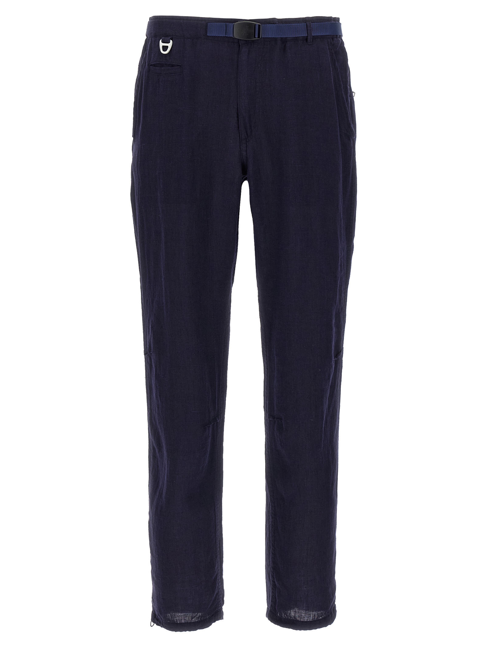 ‘Climber Easy Pants’ trousers UNDERCOVER nonnative × by GRAMICCI in garment-dyed linen, front zip and snap button closure, gusset crotch, pockets,