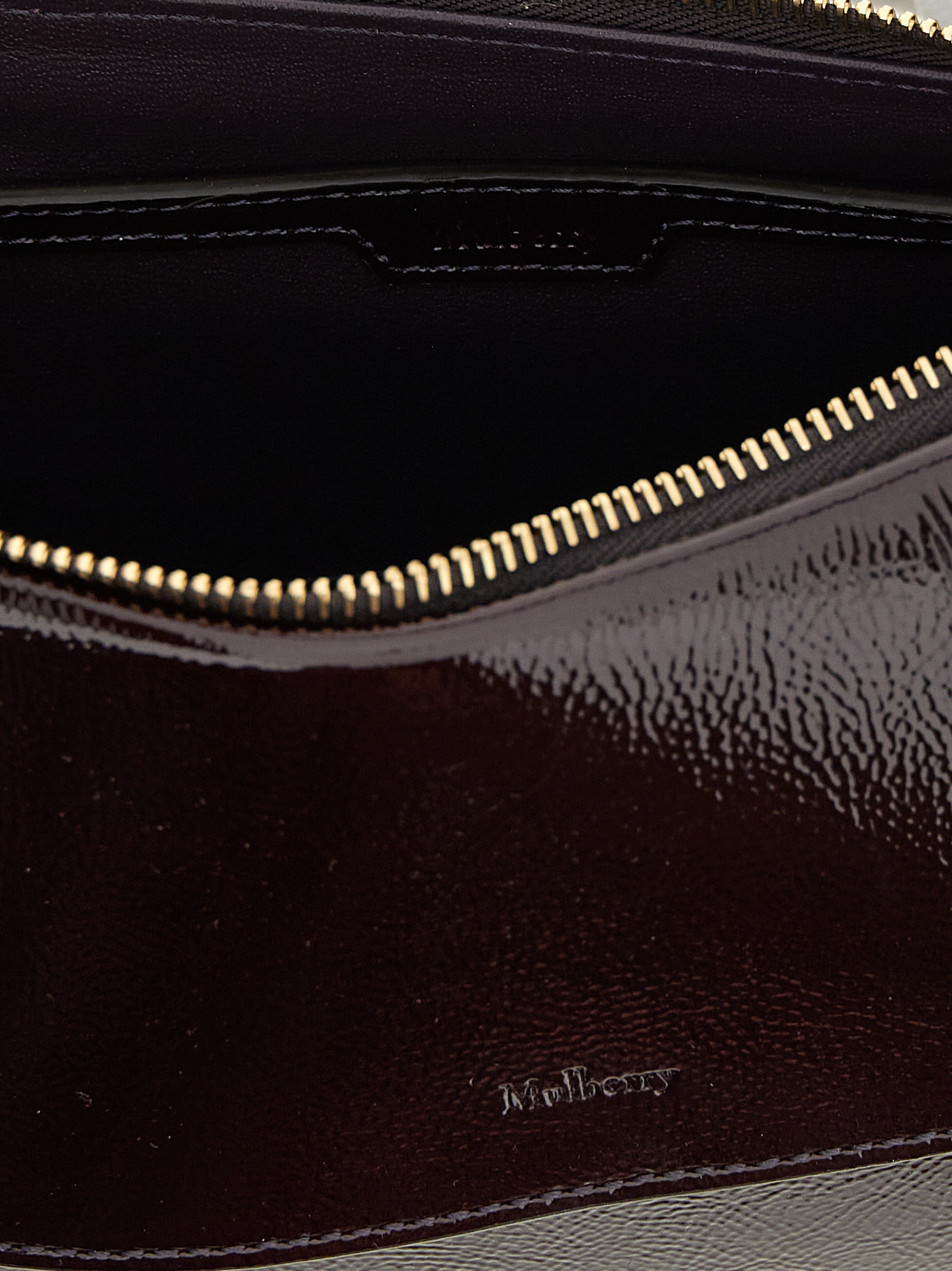 Clovelly’ patent leather shoulder bag with adjustable handle with buckle, flap closure and front magnet, front embossed logo.
