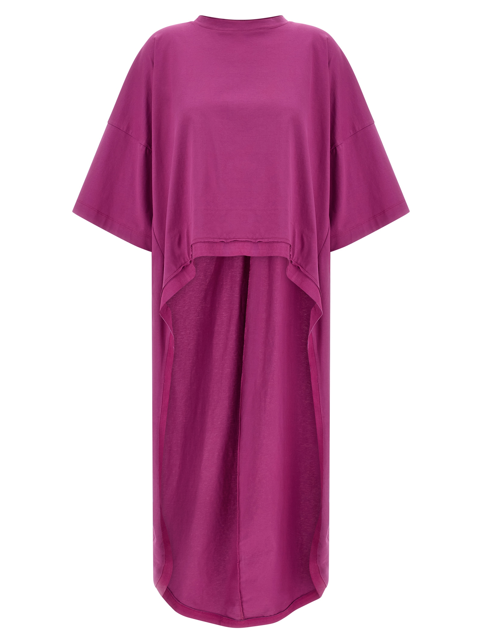 ‘Coda’ cotton T-shirt with round neckline, wide short sleeves with dropped shoulders, asymmetrical hem with tone-on-tone grosgrain tape piping.