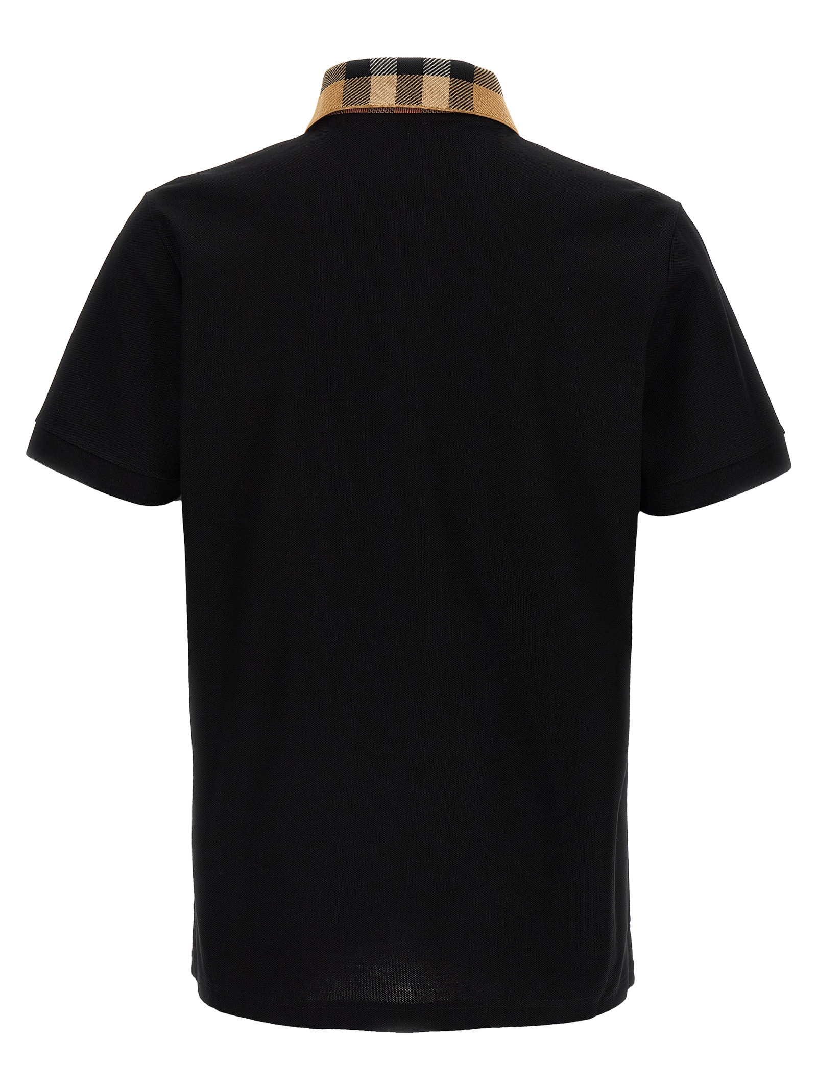 ‘Cody’ piquet cotton polo shirt with contrasting check print collar, and short sleeves.