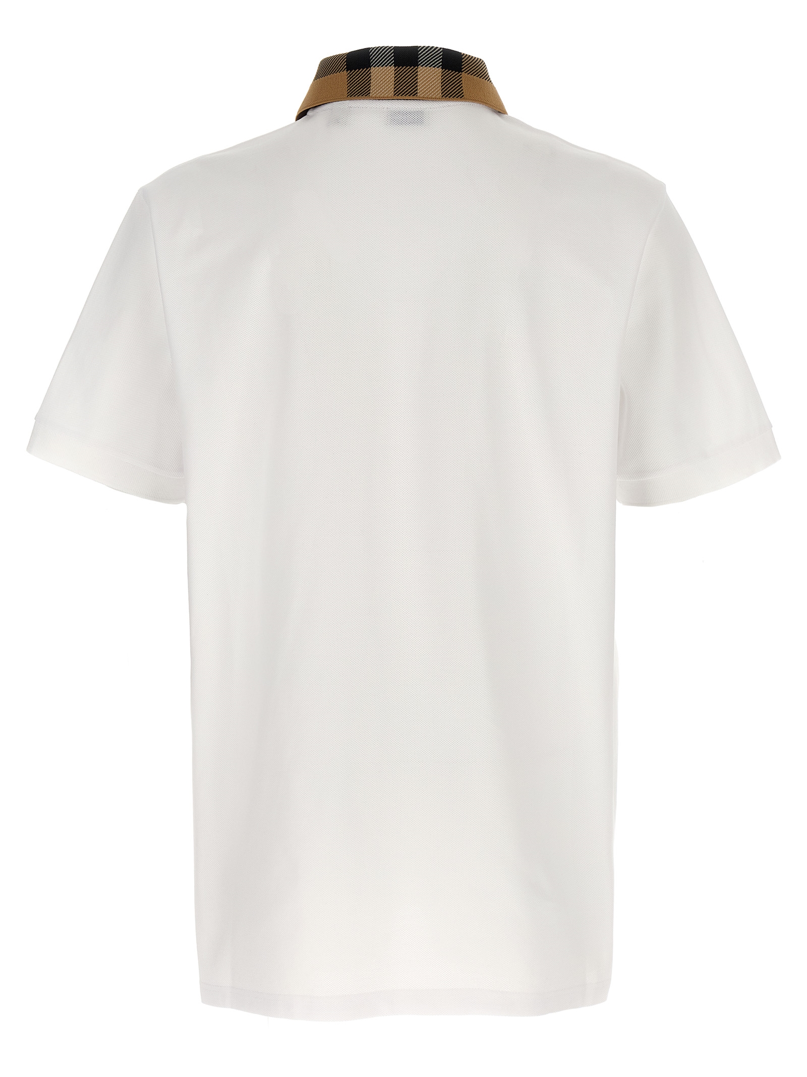 ‘Cody’ piquet cotton polo shirt with contrasting check print collar, and short sleeves.