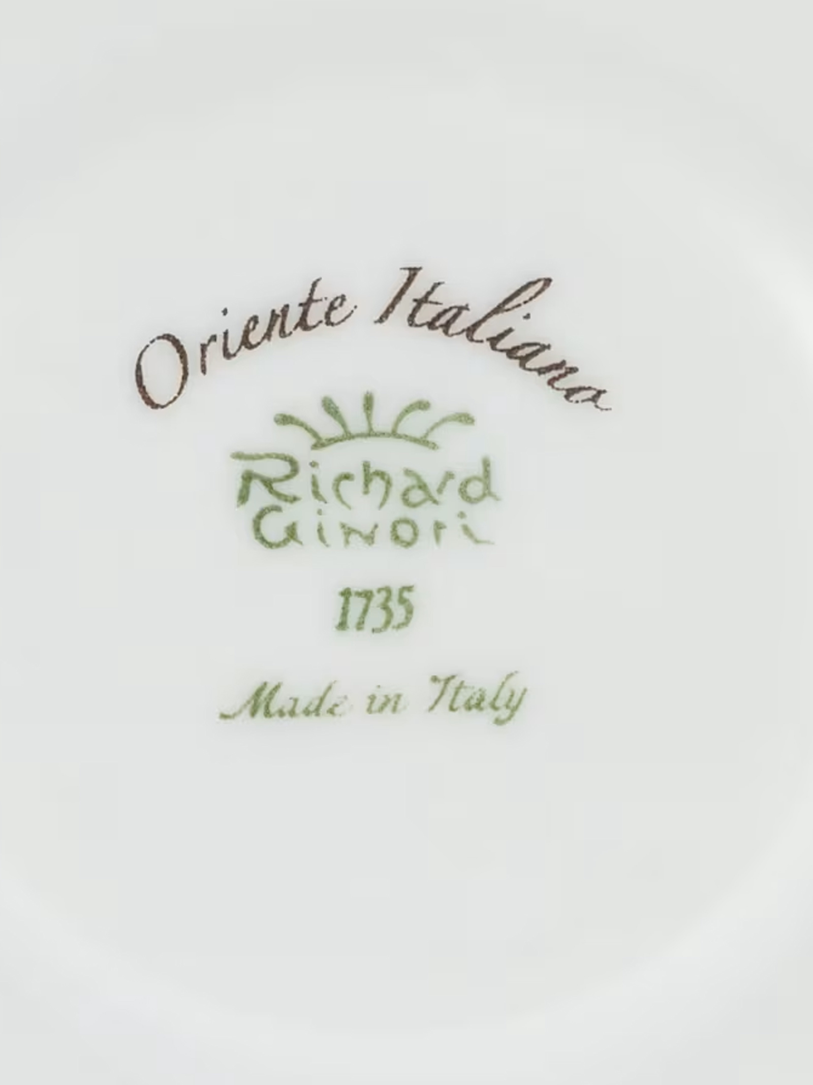 Porcelain coffee plate with Chestnut decoration and gold thread. ‘Oriente Italiano’ collection.