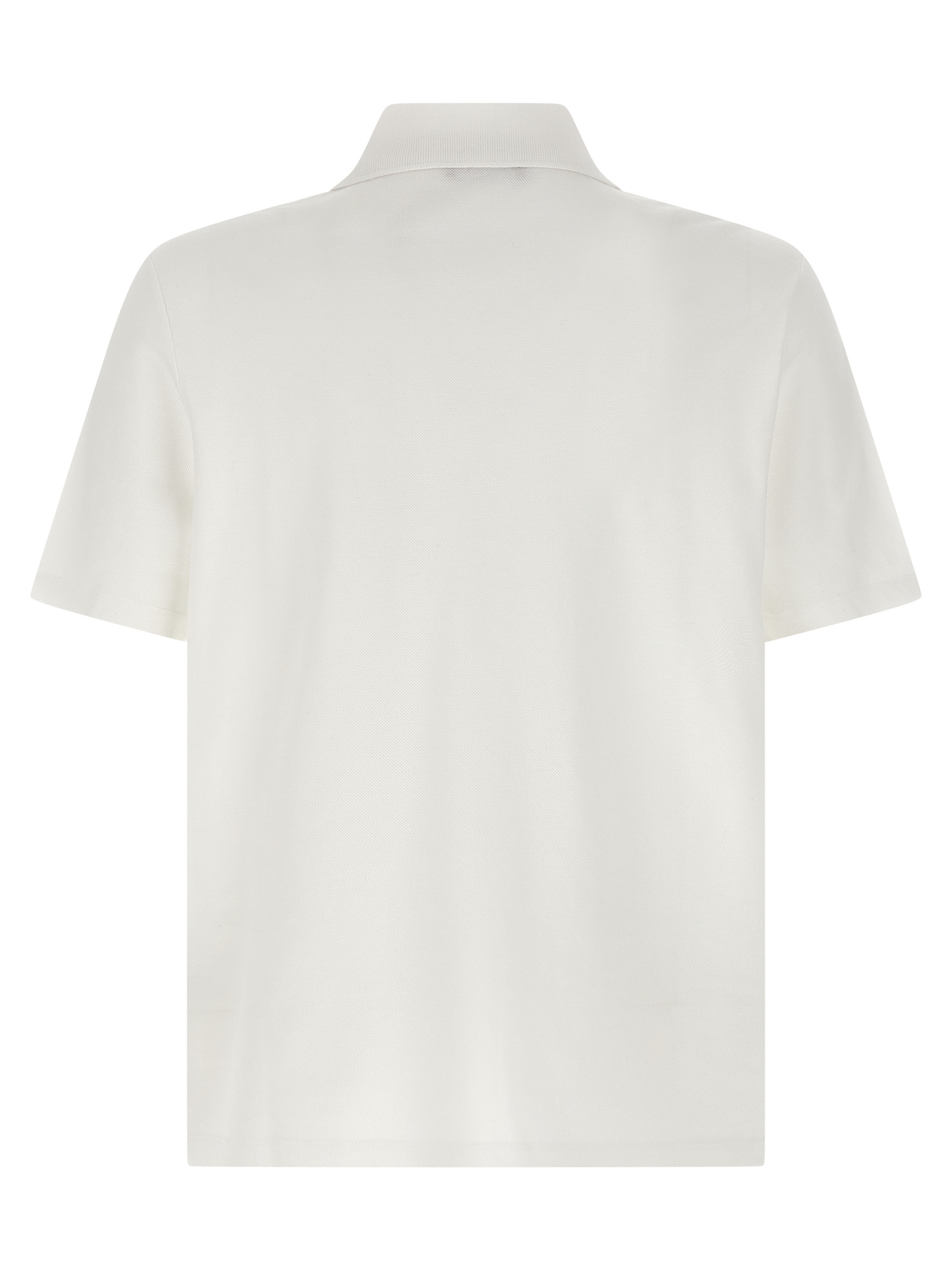 Piqué cotton polo shirt with front ‘Coin’ print, collar and buttons, short sleeves.