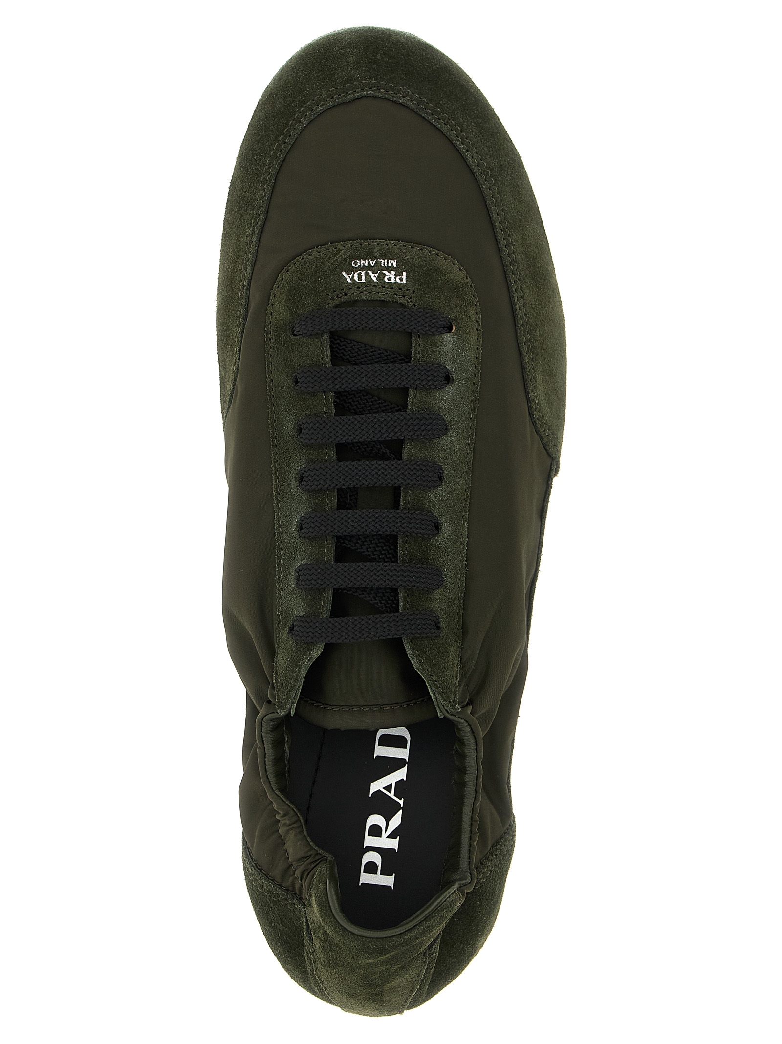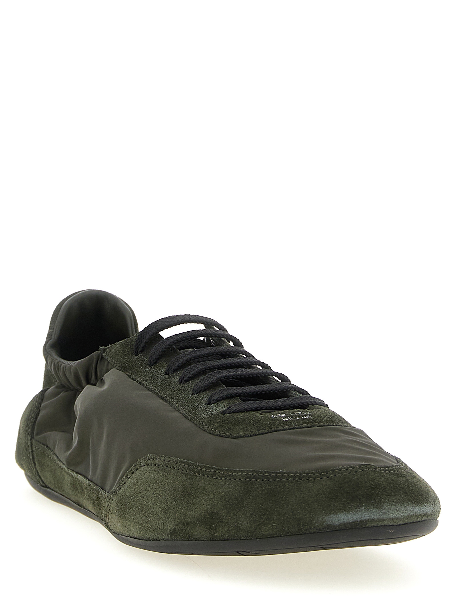 ‘Collapse’ Re-Nylon and suede sneakers with vintage finish, front embossed logo, lace-up closure, rubber sole.