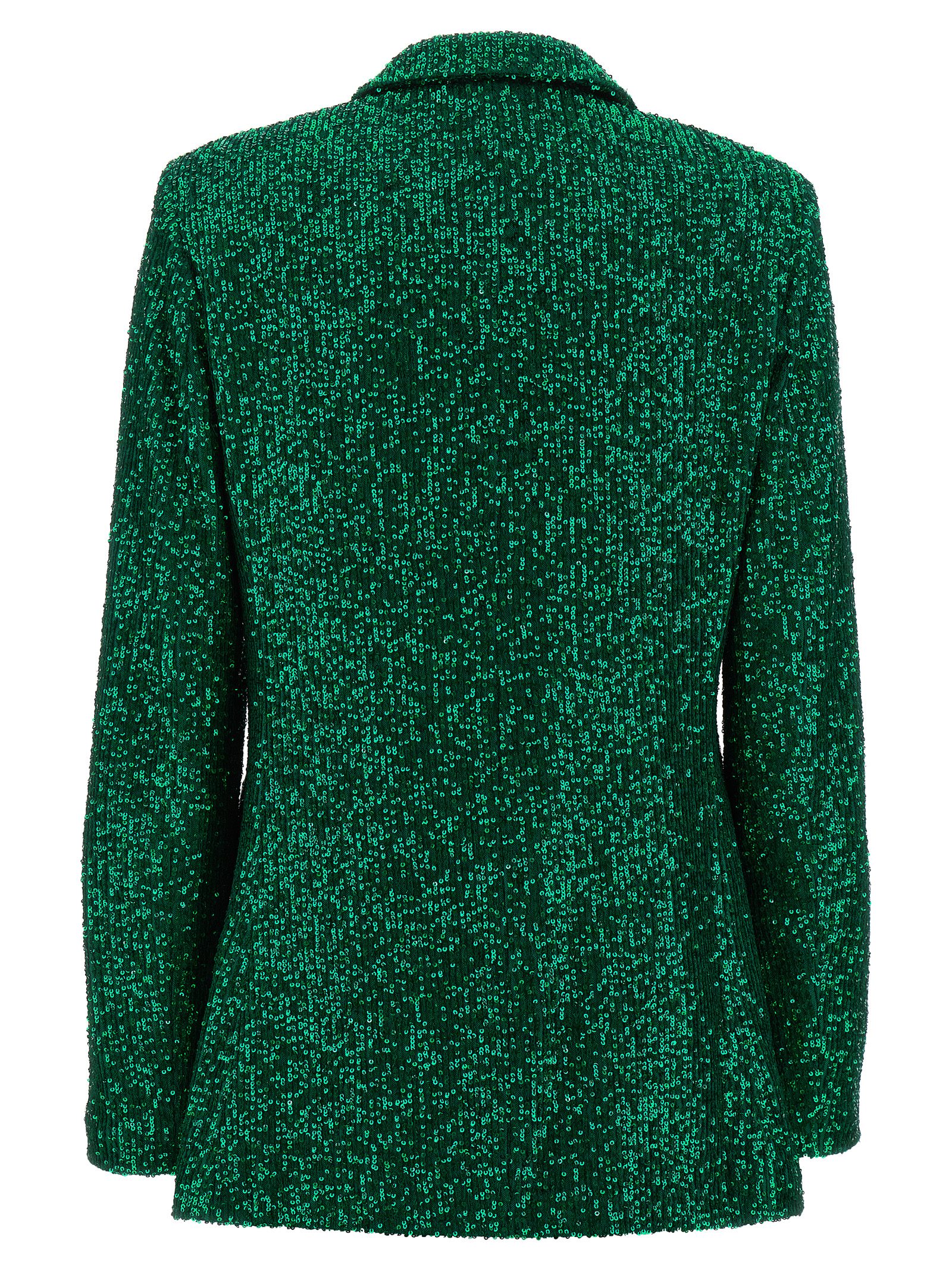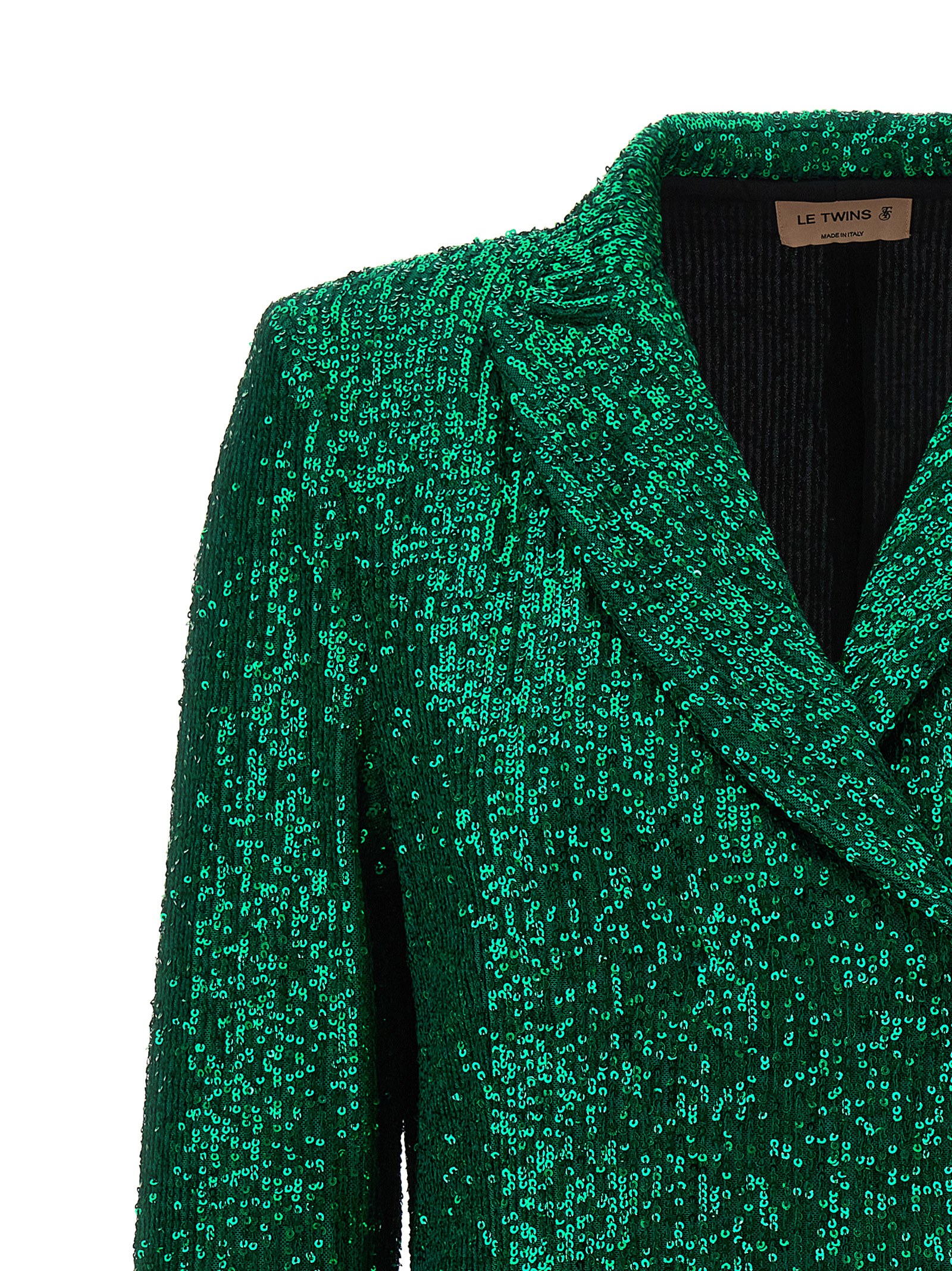 ‘Como’ double-breasted blazer with all-over sequins, button closure, pockets, long sleeves.