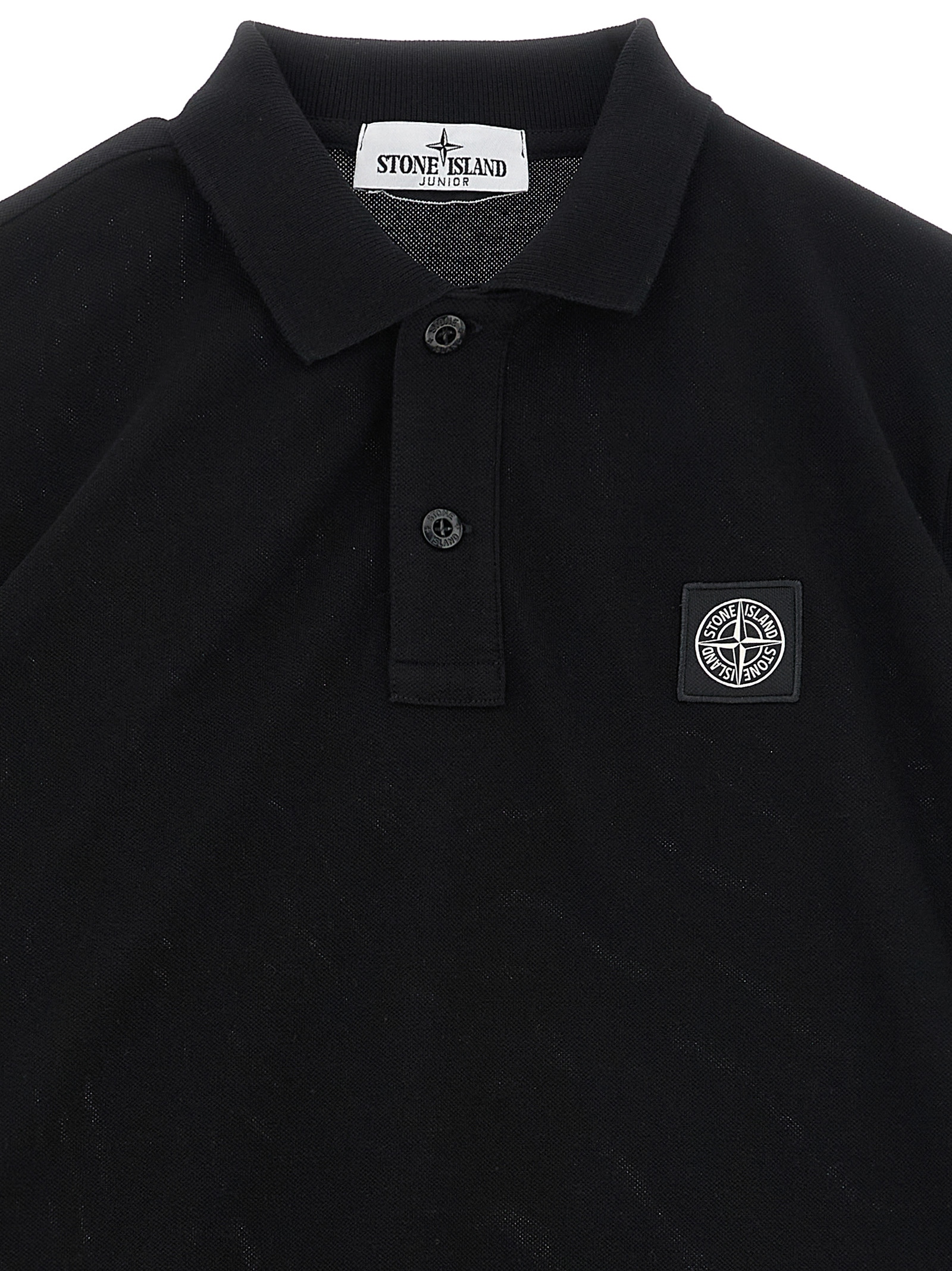 Cotton piqué polo shirt with contrasting details, front ‘Compass’ logo patch, collar and buttons, short cuffed sleeves, side slits.