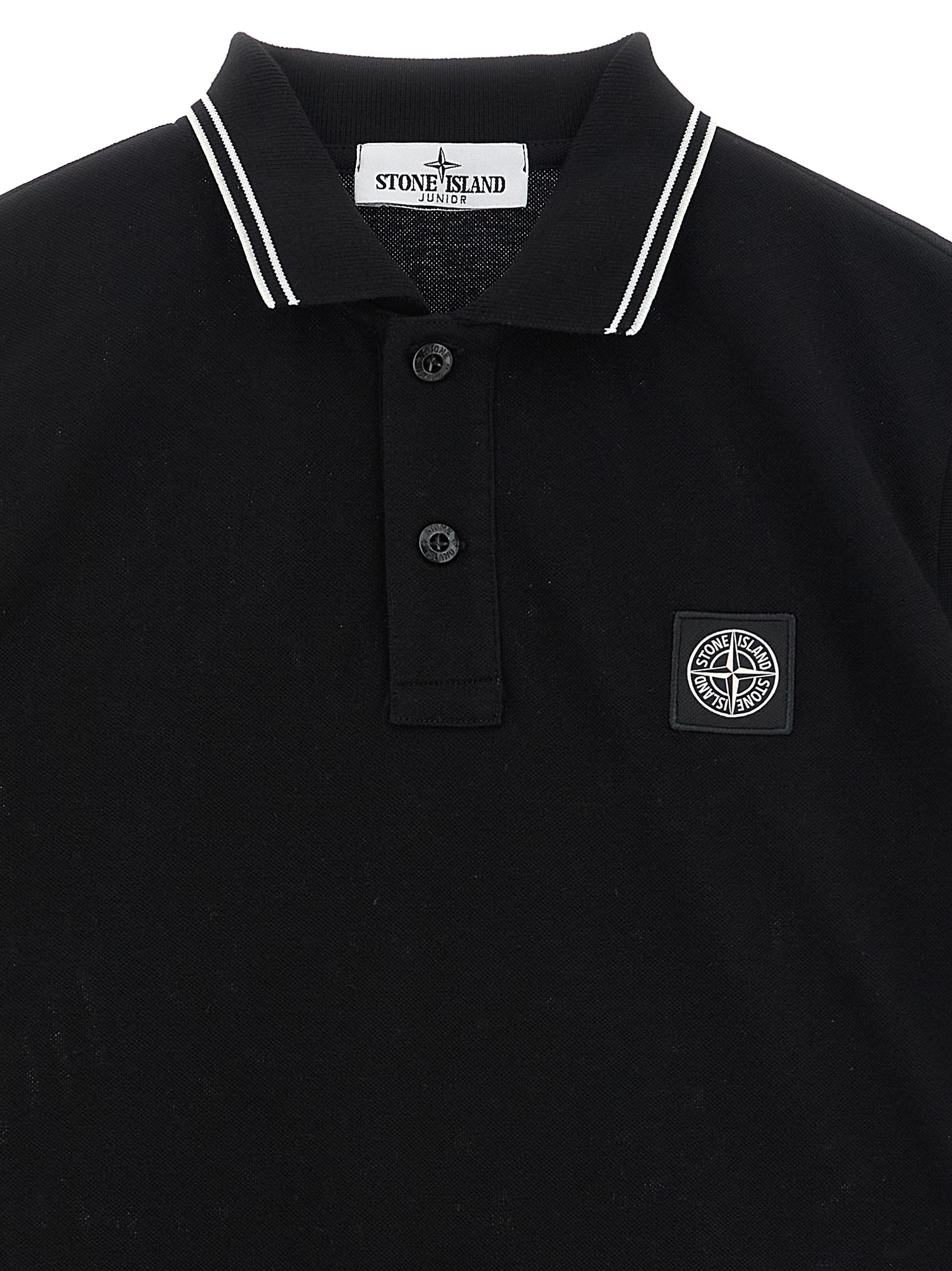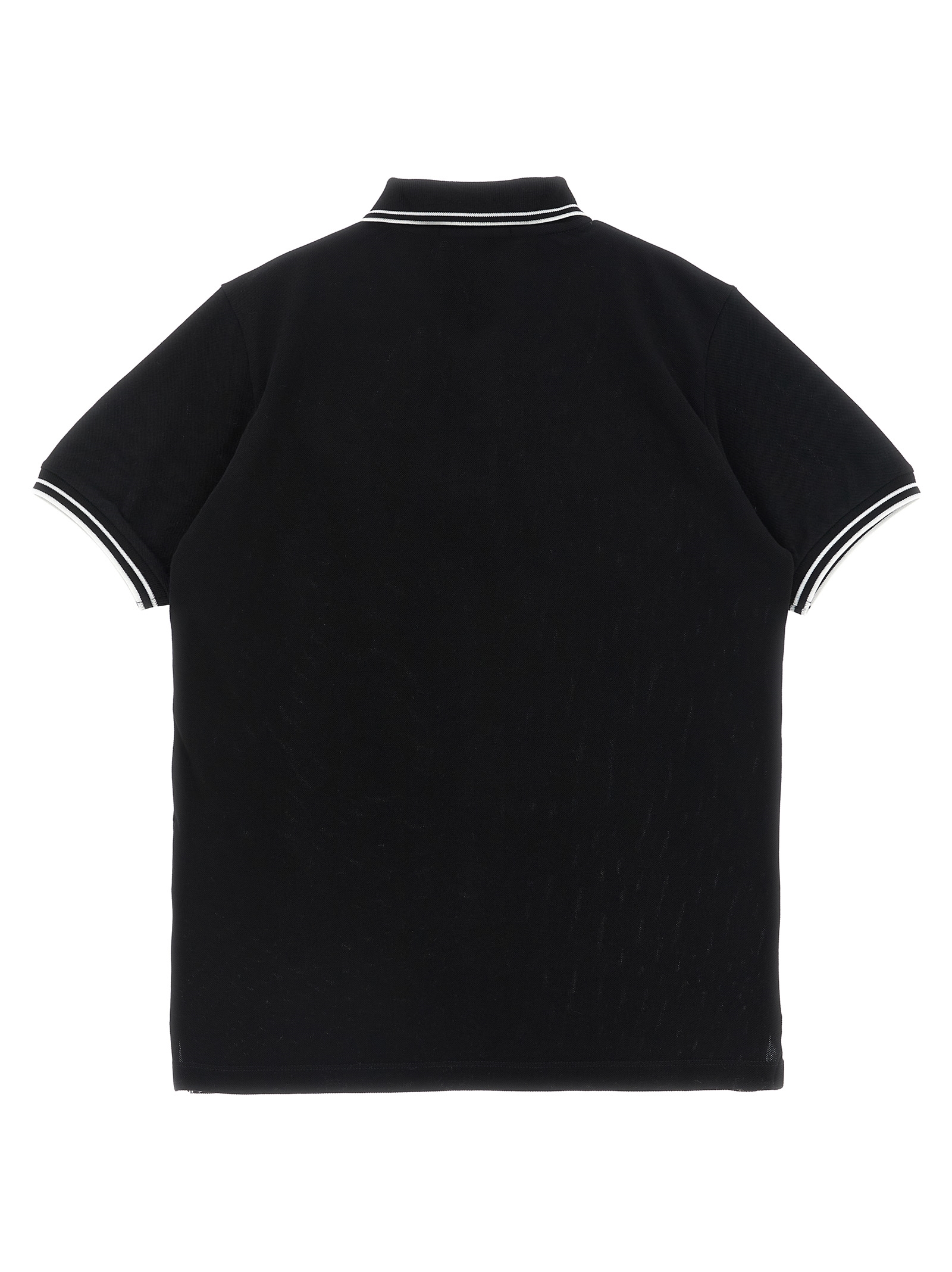 Cotton piqué polo shirt with front ‘Compass’ logo patch, collar and buttons, short cuffed sleeves, side slits.
