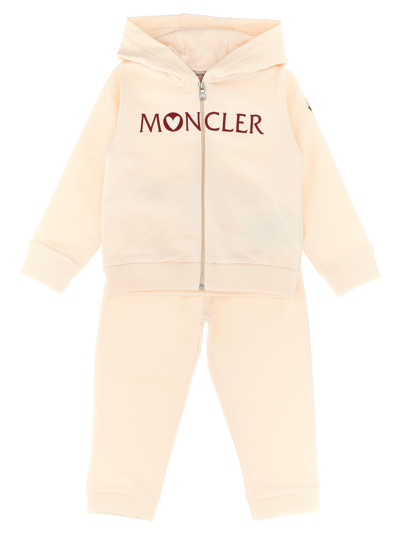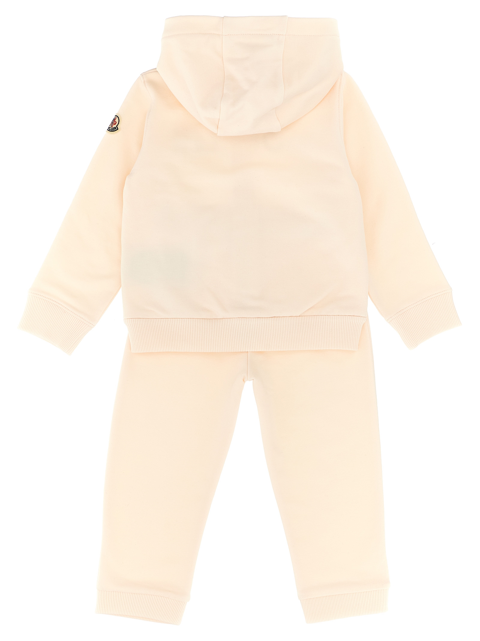 Light fleece cotton suit consisting of hoodie, logo embroidery and front zip closure, long sleeves with cuffs and logo patch in felt and joggers with elastic waistband, ankle cuffs.