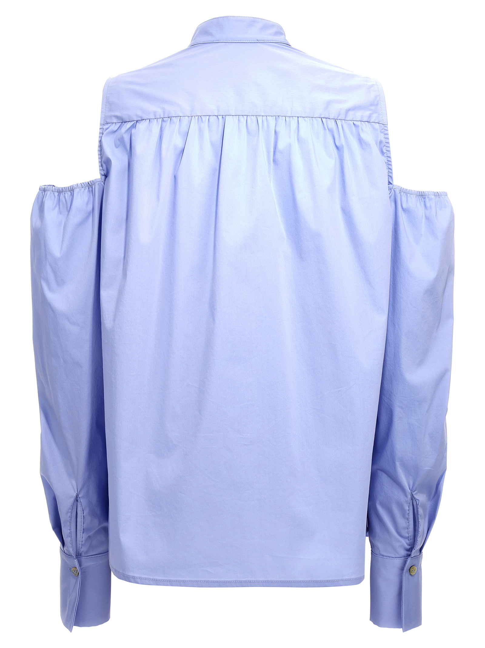‘Cora’ cotton shirt, cut out shoulder detail with elastic, long sleeves, Korean collar, button cuffs.