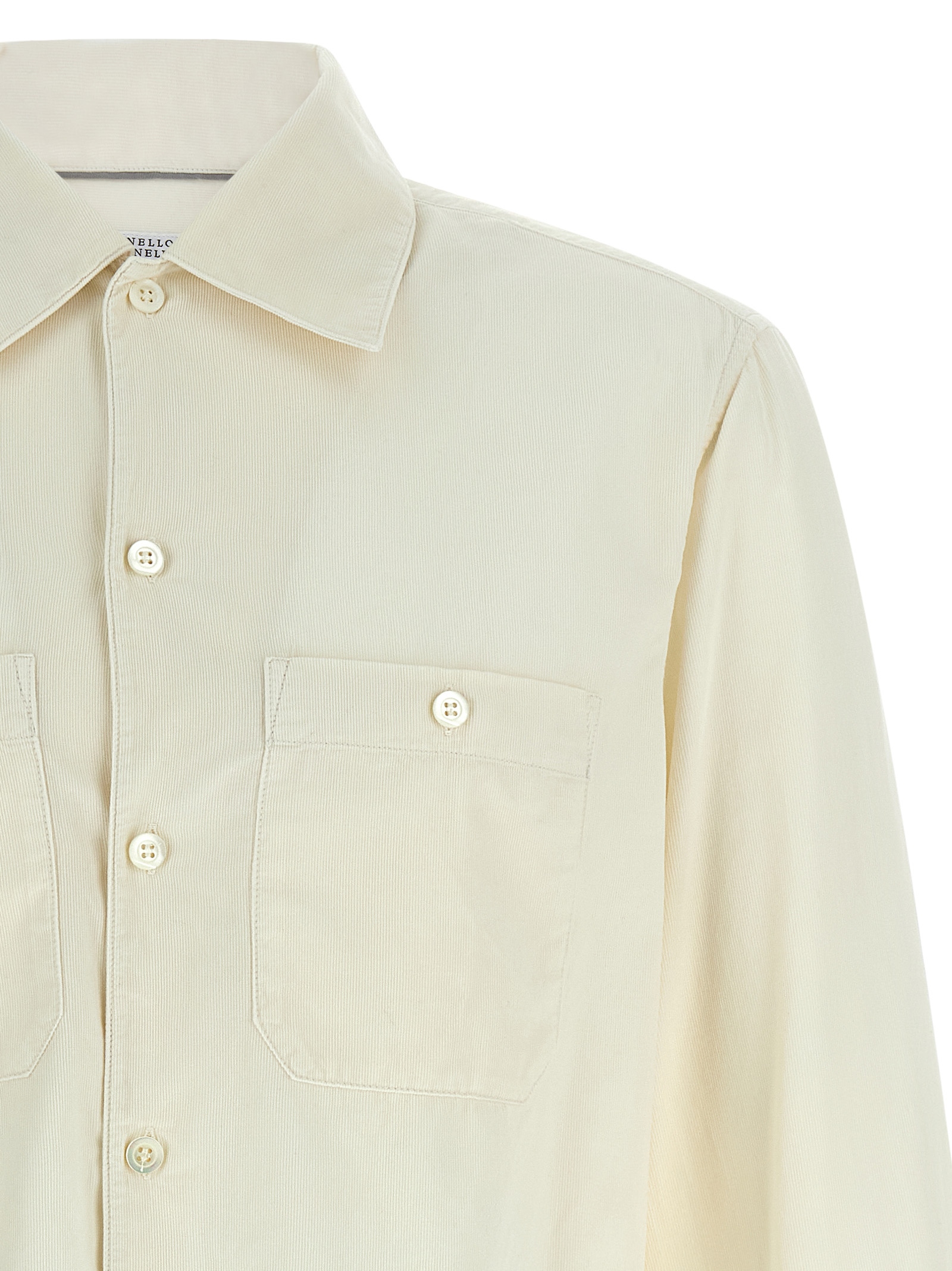 Garment-dyed 2000 stripes of ribbed cotton velvet shirt, front button closure, pockets, long sleeves with cuffs.