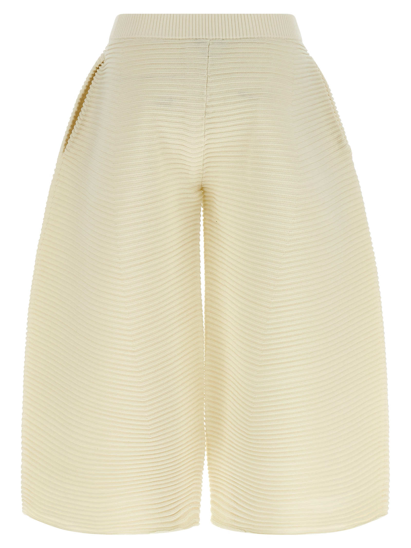 ‘Corrugated Knit’ cropped pants in ribbed fabric with curved wide leg, elastic waistband, side pockets.