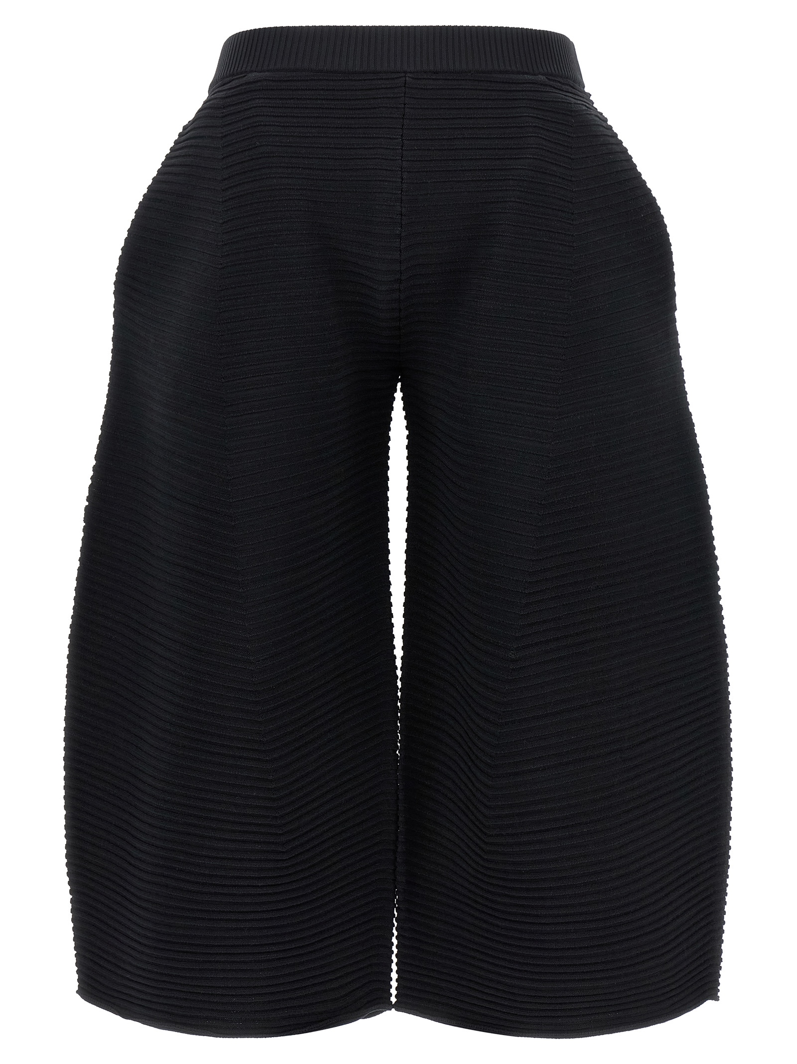 ‘Corrugated Knit’ cropped pants in ribbed fabric with wide curved leg, elastic waistband,side pockets.ckets.