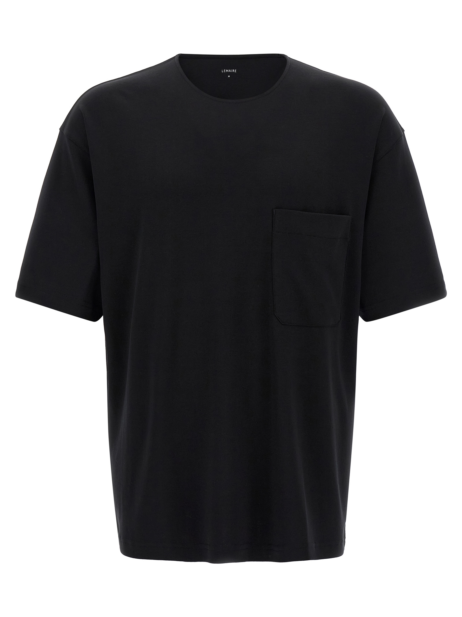 Cotton and silk interlock jersey t-shirt, chest pocket, round neckline, short sleeves with dropped shoulders.