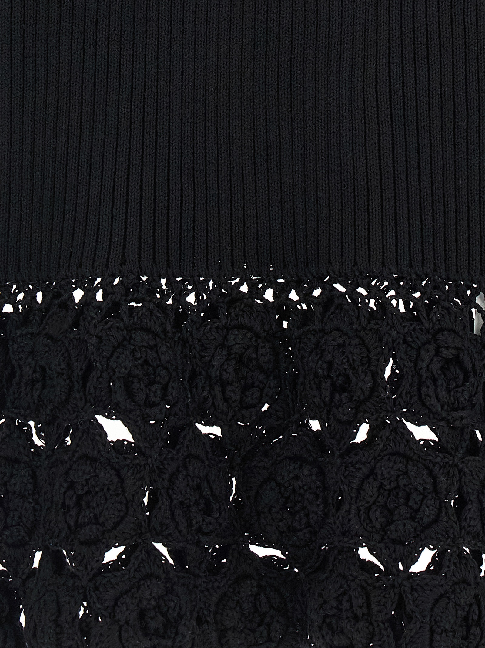 ‘Cotton Crochet’ knitted ribbed stretch cotton vest with V-neck, tone-on-tone crochet cotton insert on the hem.