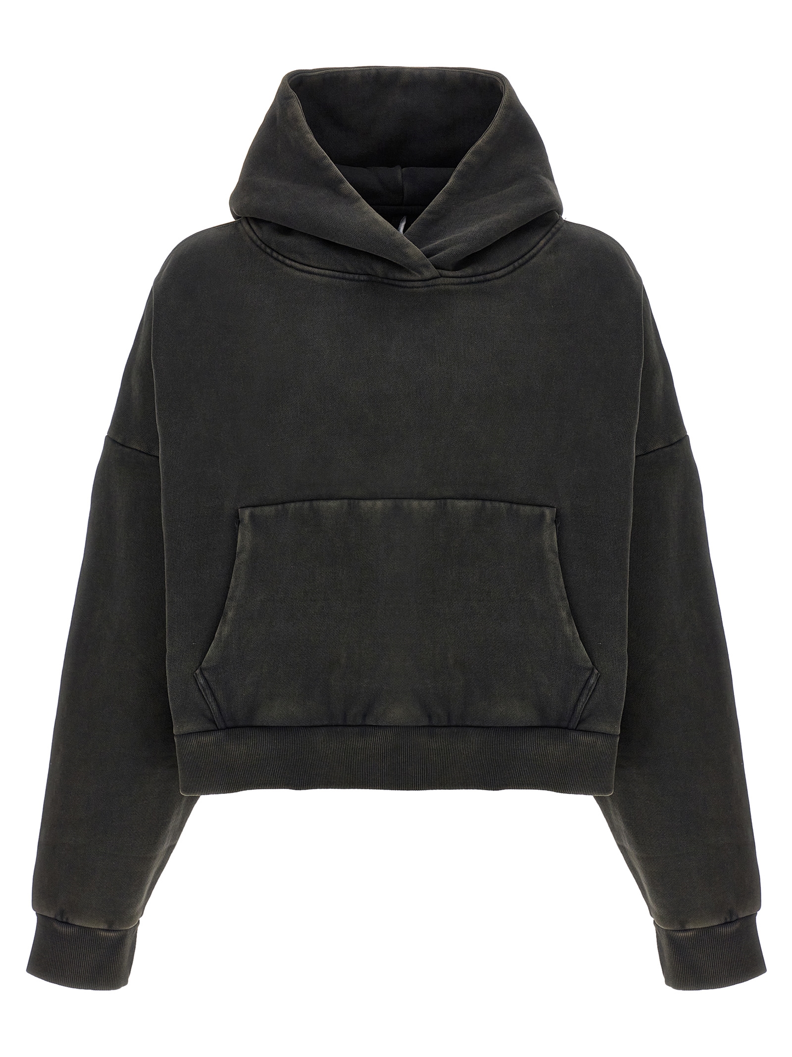 Faded cotton hoodie with kangaroo pocket, long cuffed sleeves and dropped shoulders.