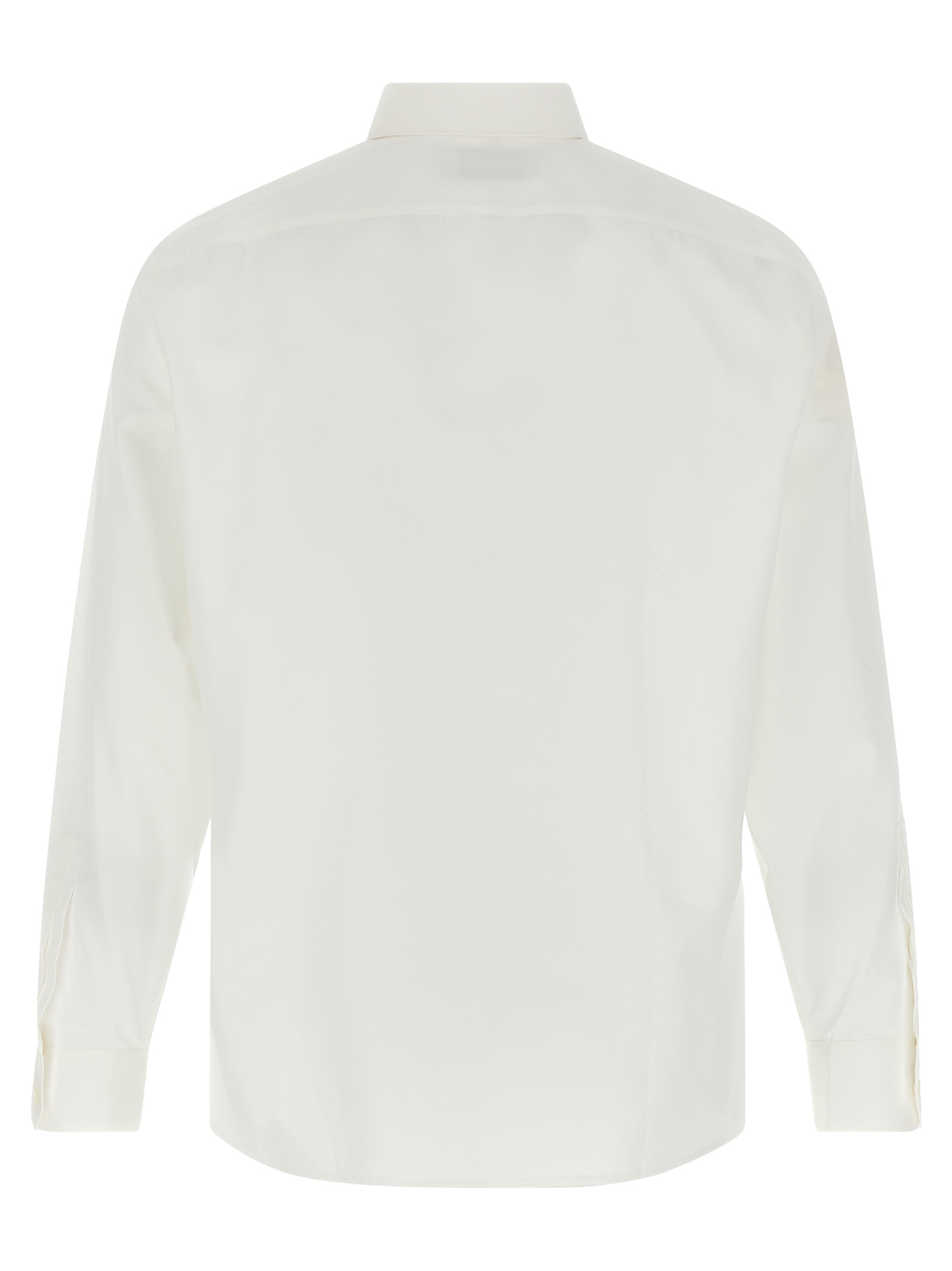 Cotton poplin shirt with button closure, long cuffed sleeves.