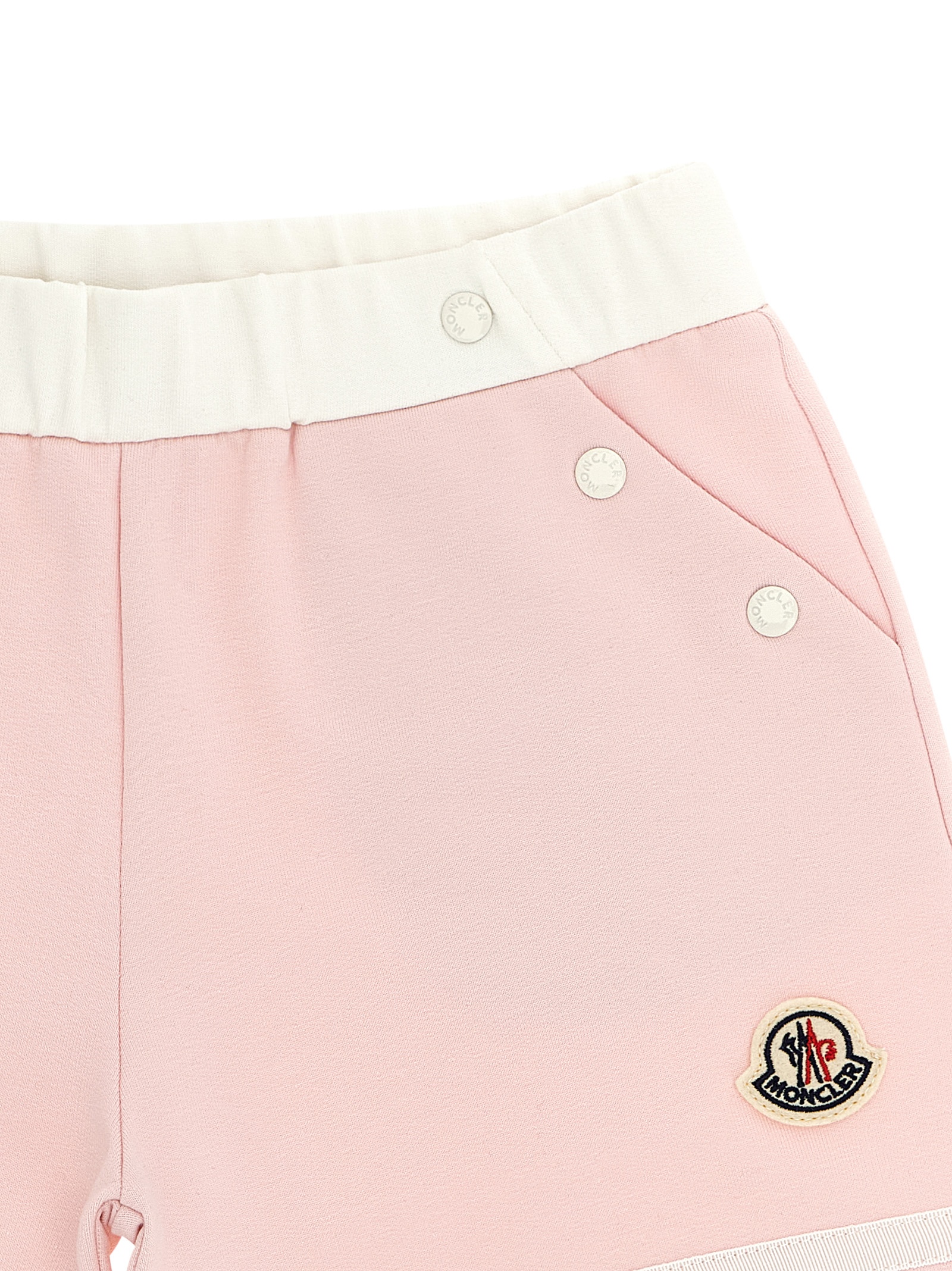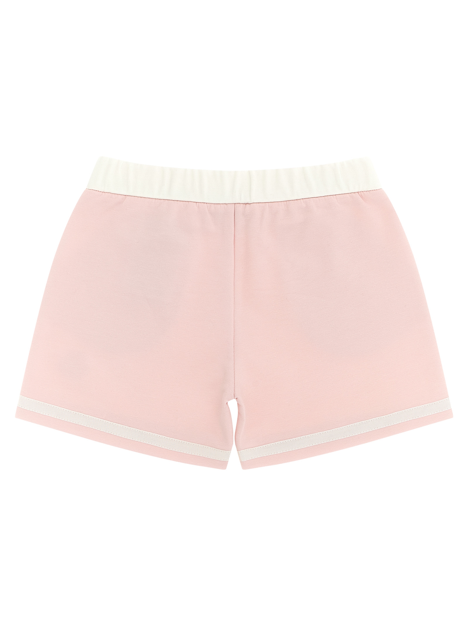 Bermuda shorts in viscose and cotton blend with contrasting details and front metal logo rivets, pockets, elastic waistband, felt logo patch.