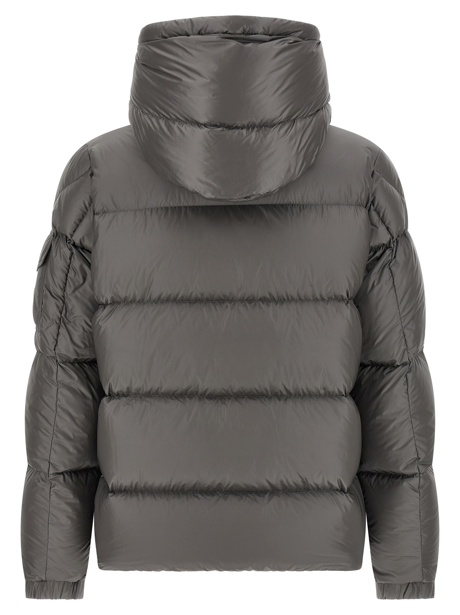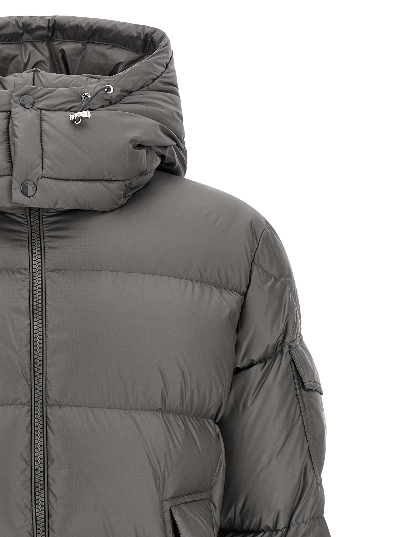 ‘Couyere’ water-repellent quilted micro ripstop down jacket with goose down padding, adjustable and removable hood, standing collar, front zip closure, pockets, long sleeves with elastic cuffs and felt logo patch, drawstring at the hem.