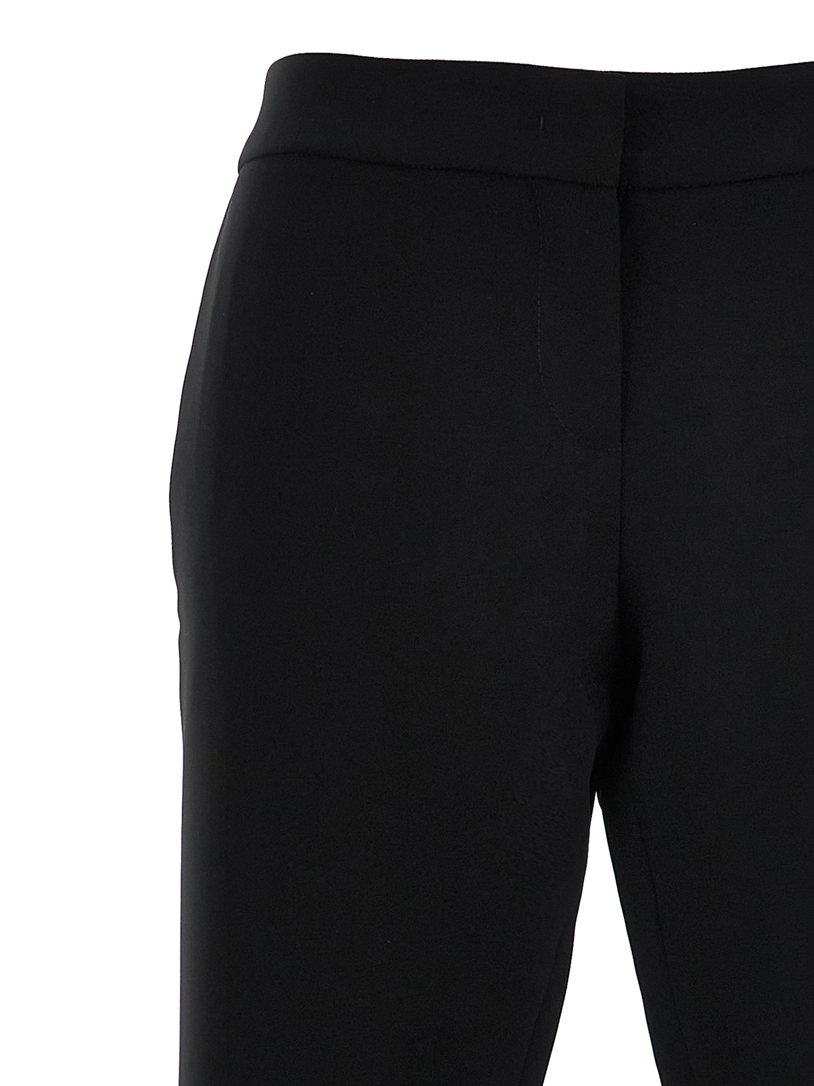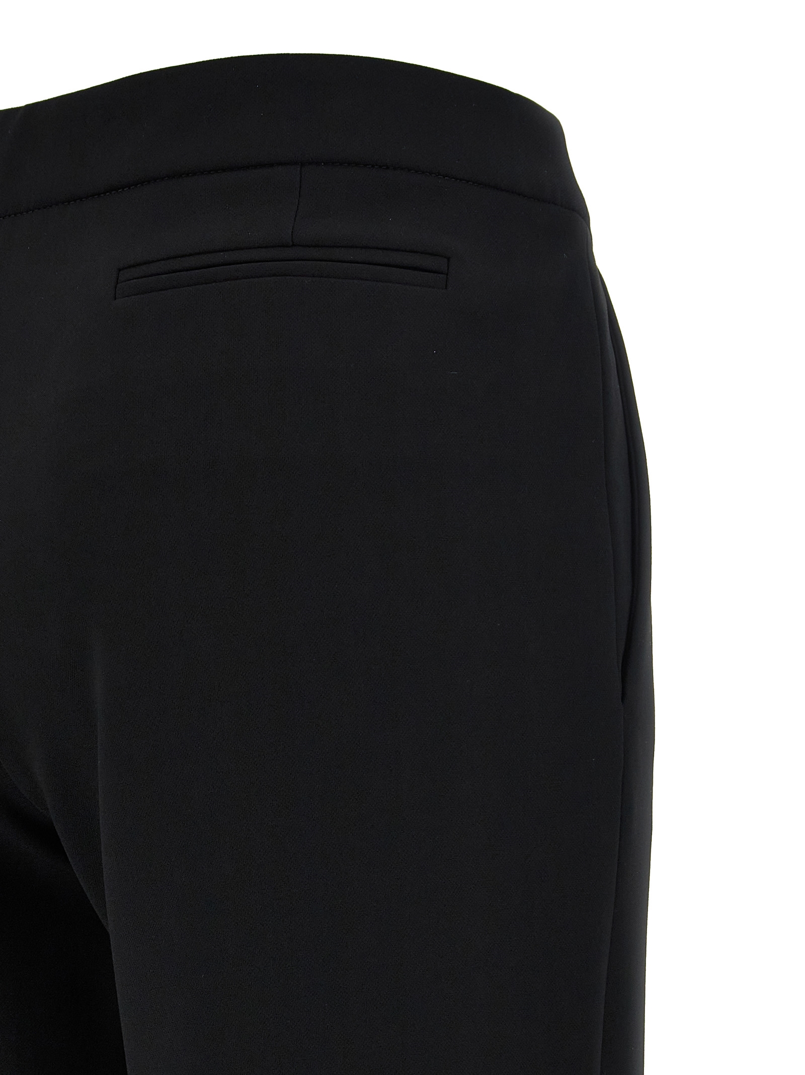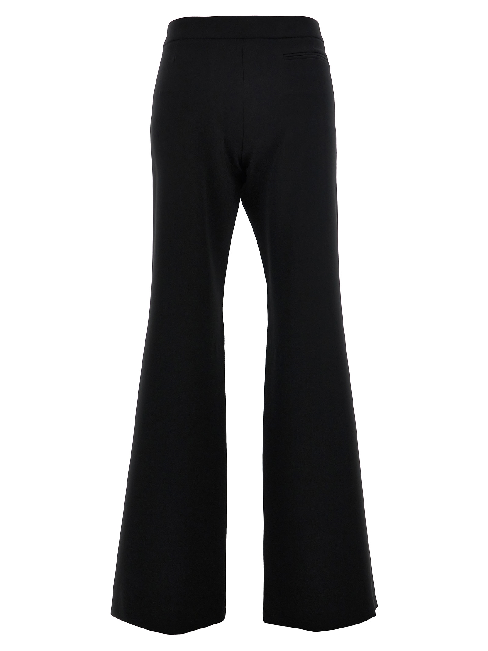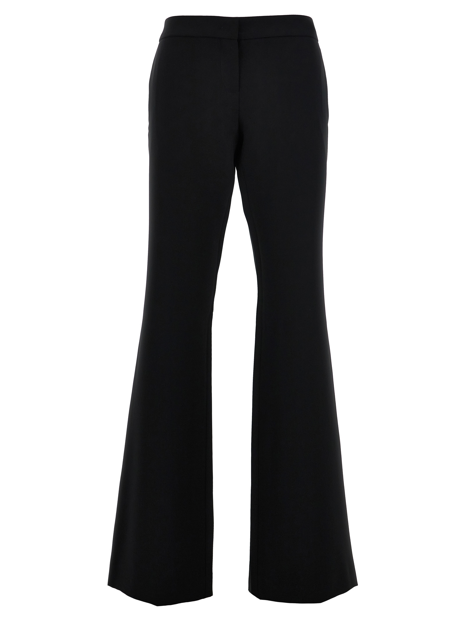 Flared leg crepe pants, hook and button zip closure, pockets.