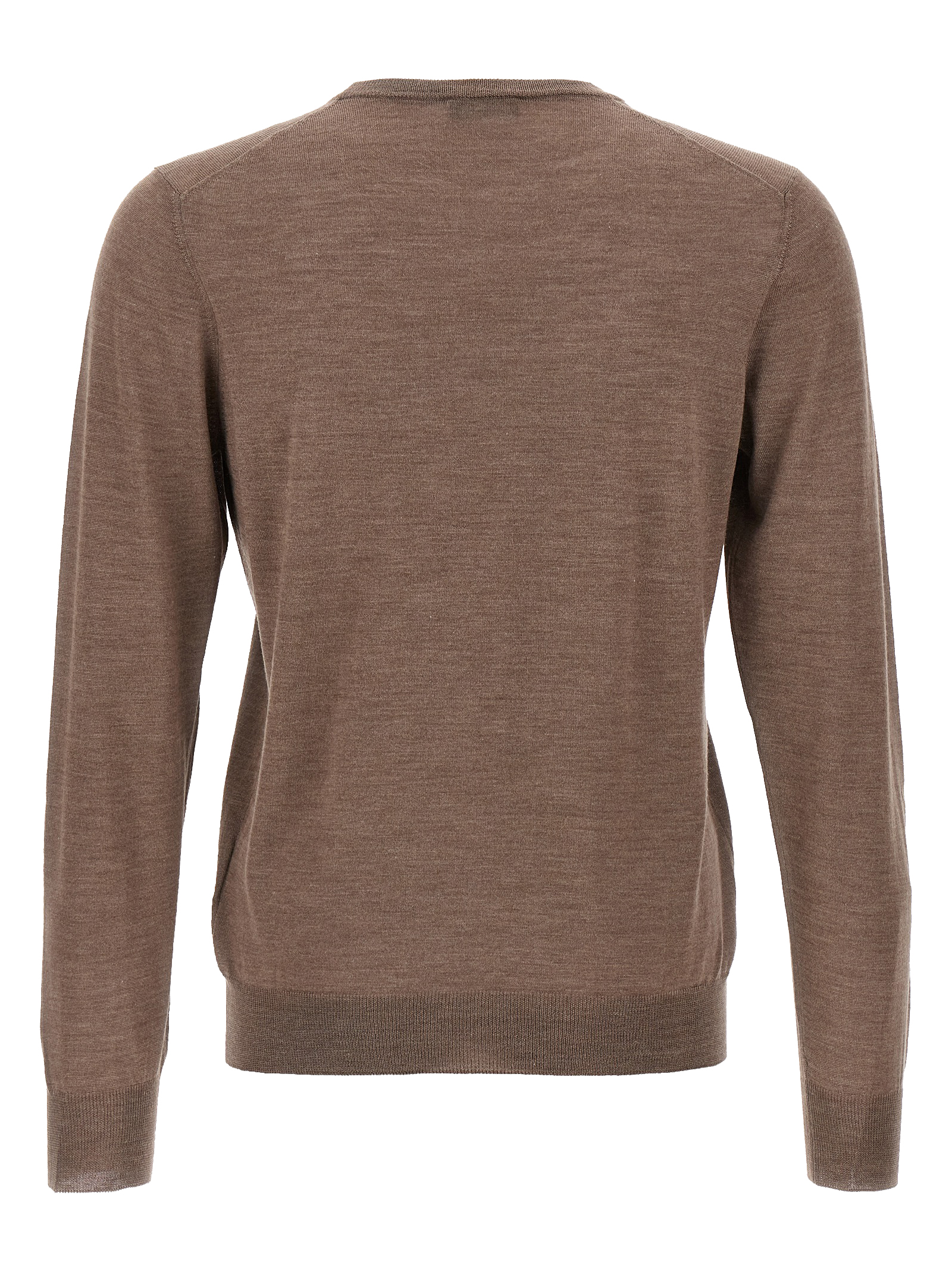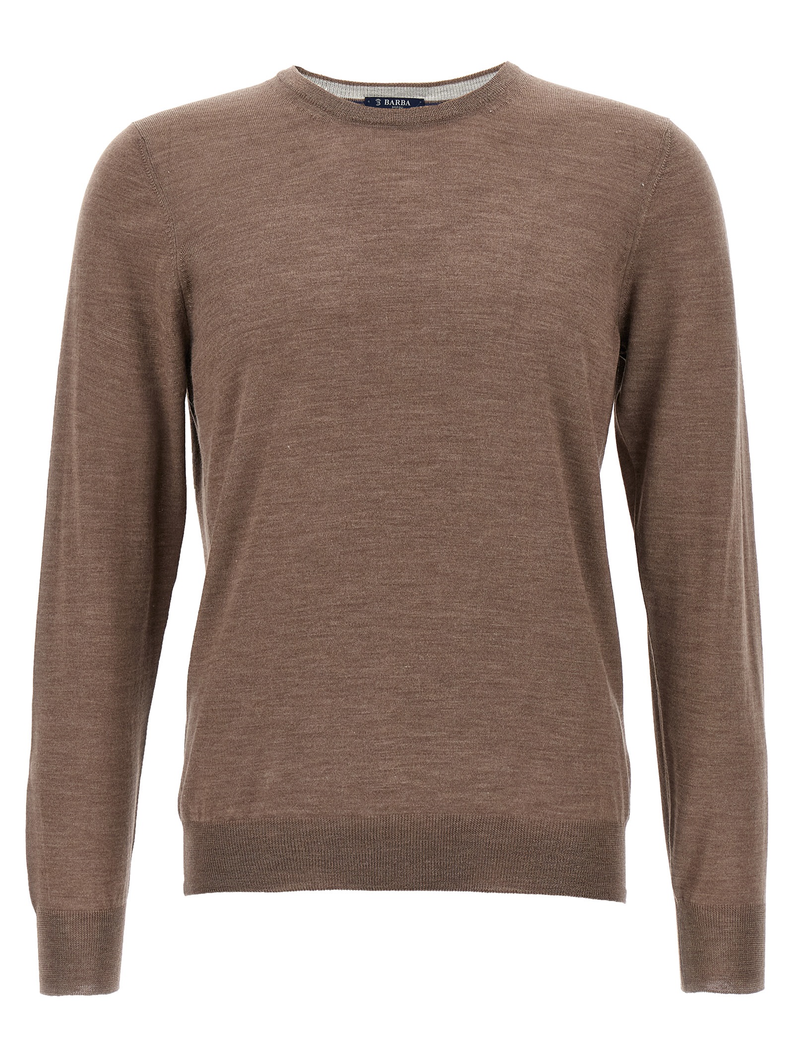 Wool and silk blend sweater, crew neck, long cuffed sleeves.