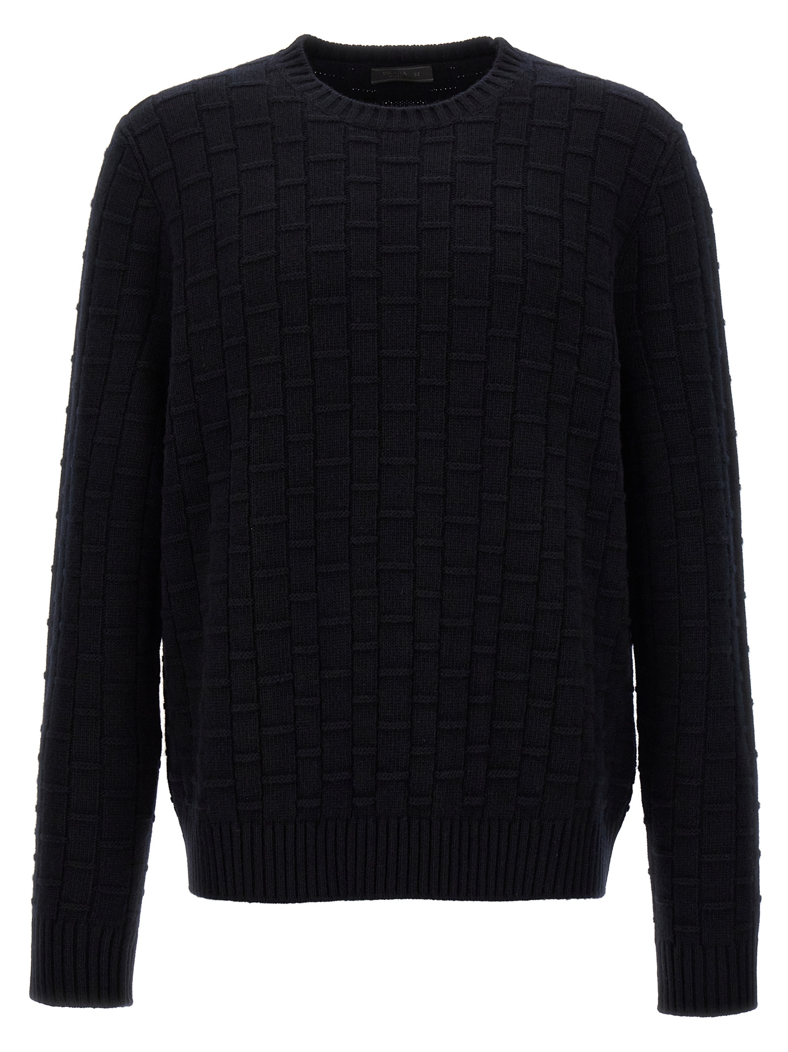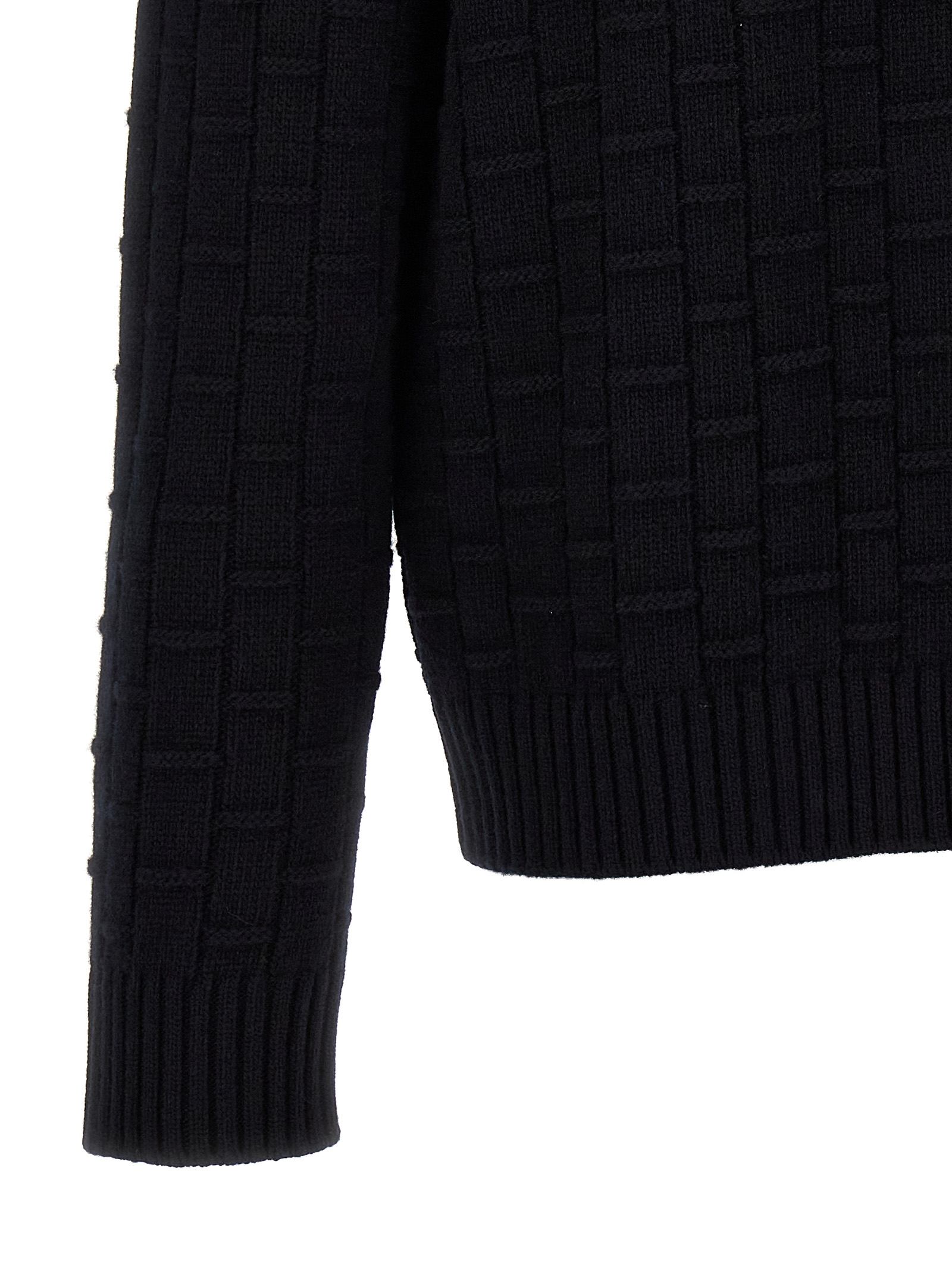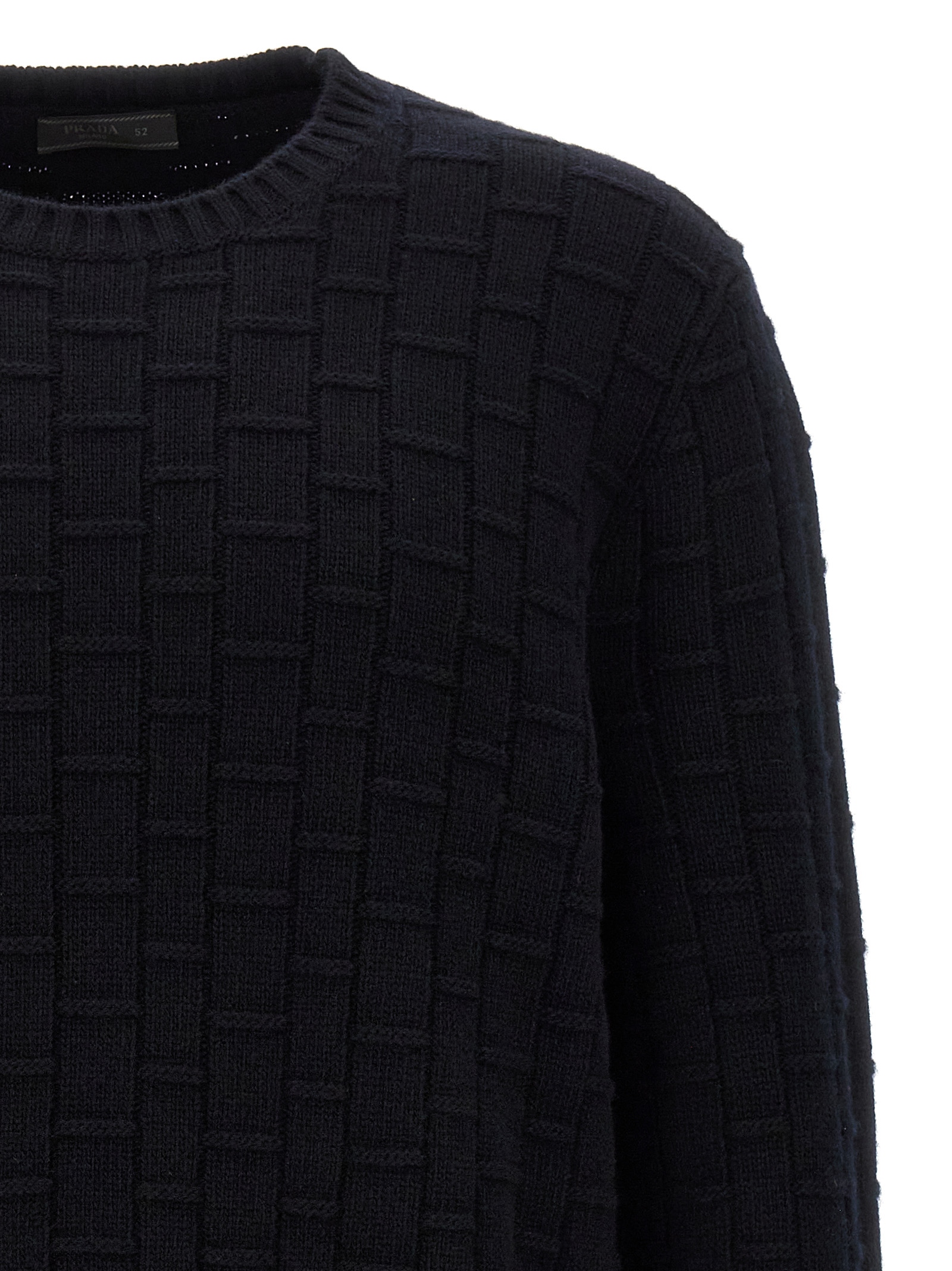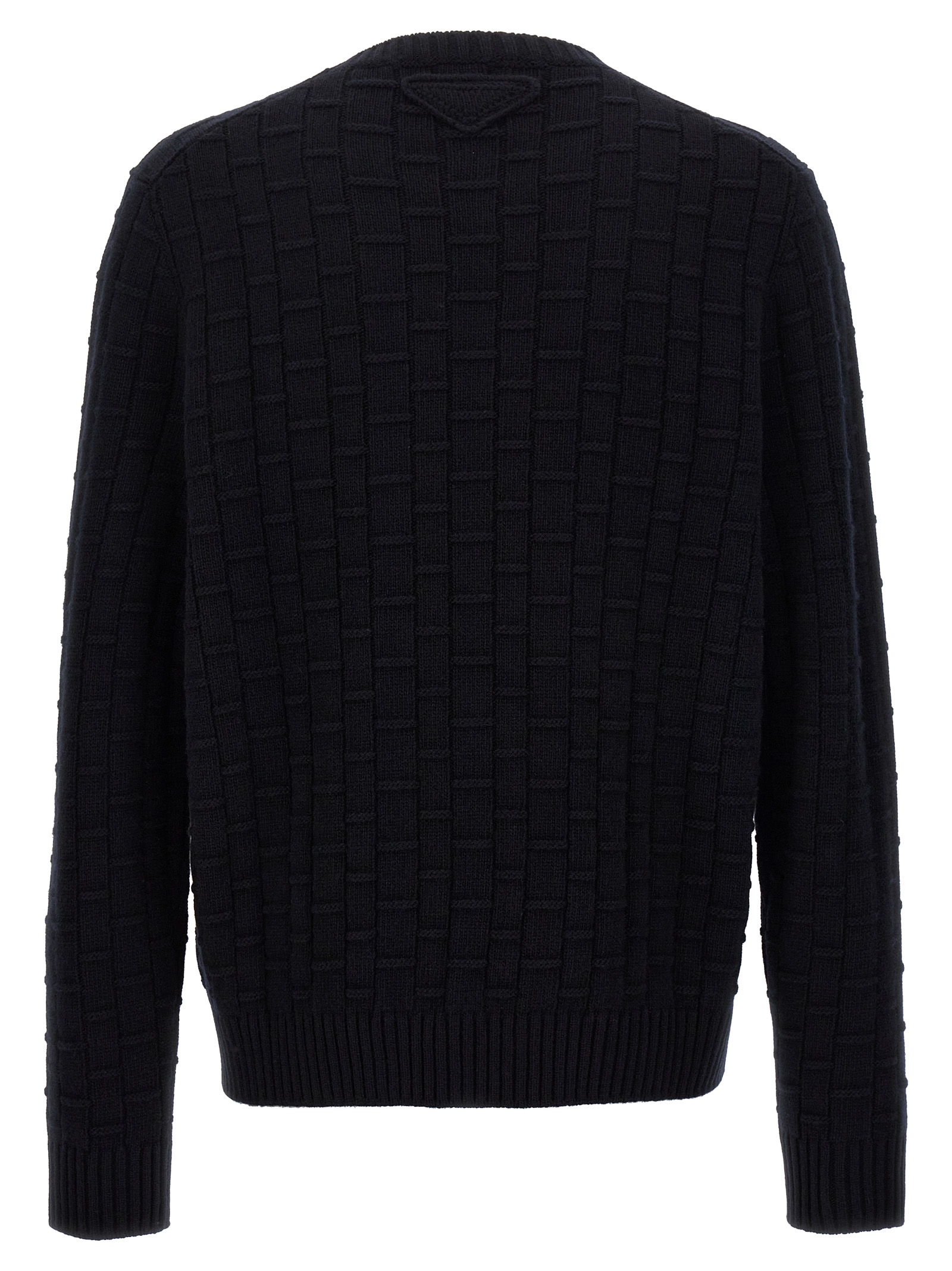 Crewneck sweater in processed wool and cashmere with long cuffed sleeves.